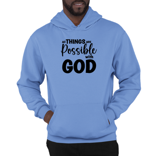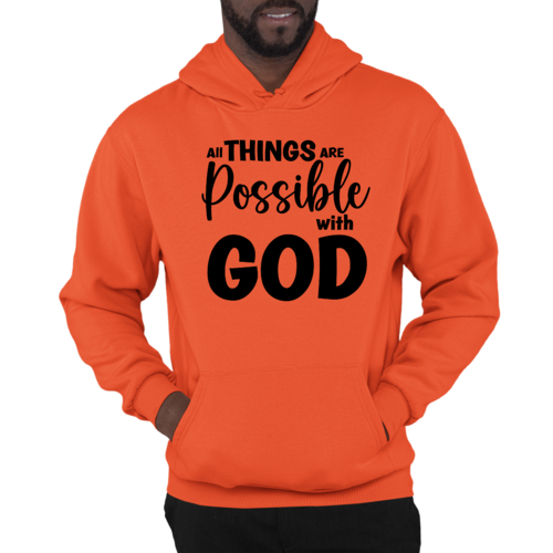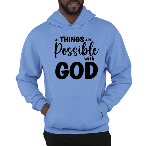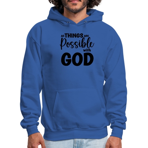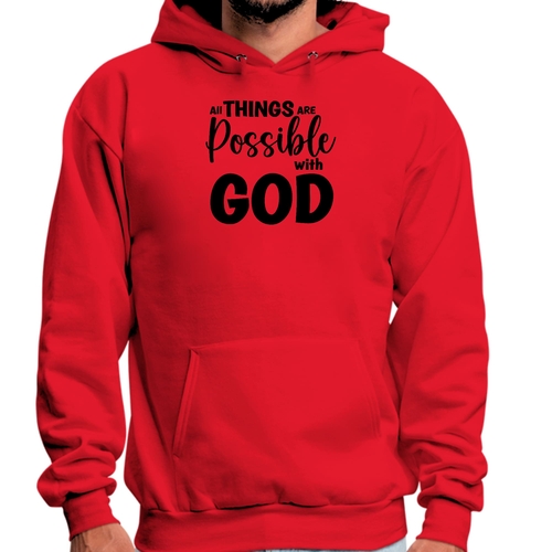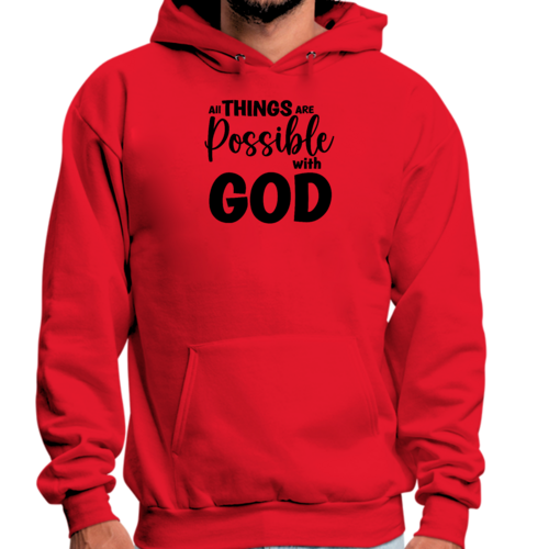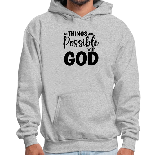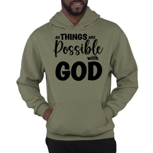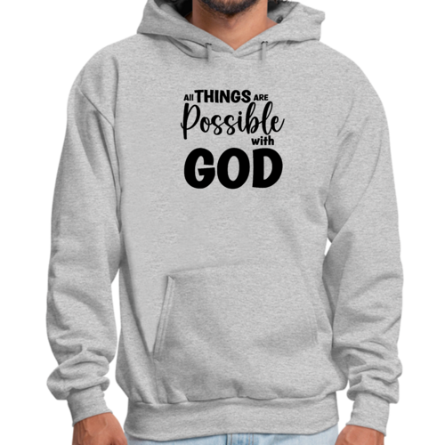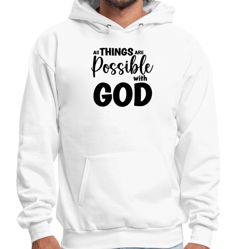 Introducing the Men's Graphic Hoodie featuring the inspiring message 'All Things are Possible with God' in a sleek black design. This hoodie is not just a piece of clothing; it's a statement of faith and positivity. Made from a high-quality blend of 50% cotton and 50% polyester, it offers the perfect balance of comfort and durability, making it an essential addition to your wardrobe.