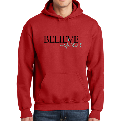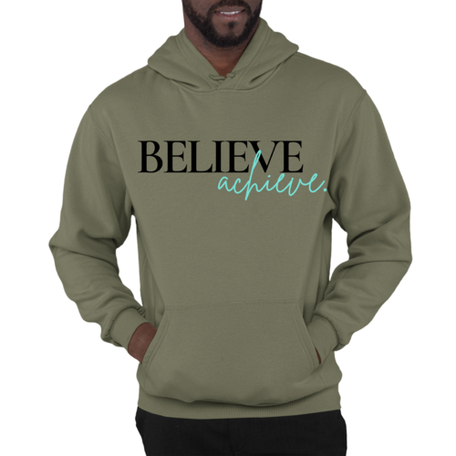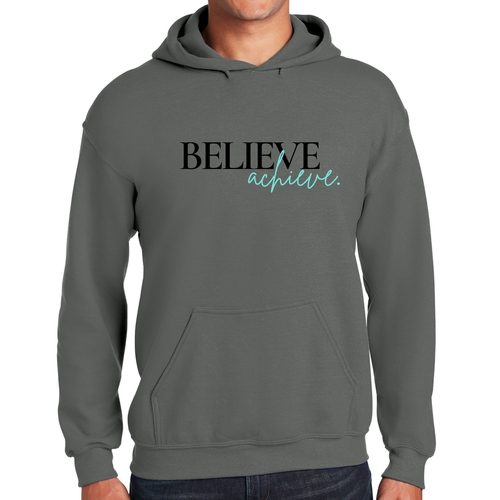 The standout feature of this hoodie is its inspirational graphic that reads 'Believe and Achieve'. This motivational message serves as a daily reminder to pursue your goals and dreams. The bold design is not only eye-catching but also resonates with individuals who value positivity and self-improvement. Wear it proudly and inspire those around you!
