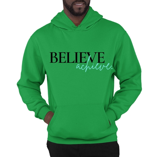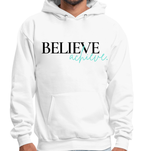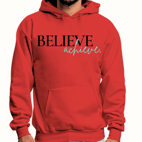 In summary, the Men's Graphic Hoodie 'Believe and Achieve' is not just a piece of clothing; it's a statement. It combines comfort, durability, and motivation into one stylish package. Whether you're wearing it for a workout, a casual day out, or simply lounging at home, this hoodie is sure to become a staple in your wardrobe. Don't miss out on the chance to own this inspiring piece!