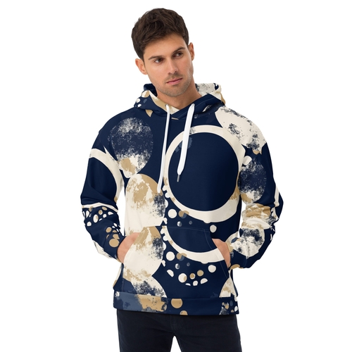Introducing the Men's Graphic Hoodie in a stunning blue and beige spotted print, a must-have addition to any modern wardrobe. This hoodie is not just a piece of clothing; it's a fashion statement that combines comfort with style. The dynamic all-over print is designed to capture attention and showcase your individuality, making it perfect for those who want to stand out in a crowd.