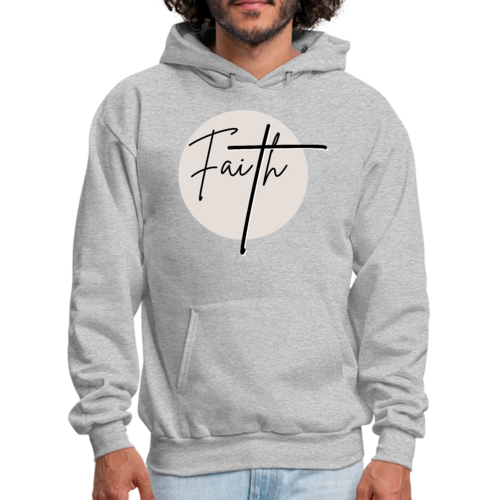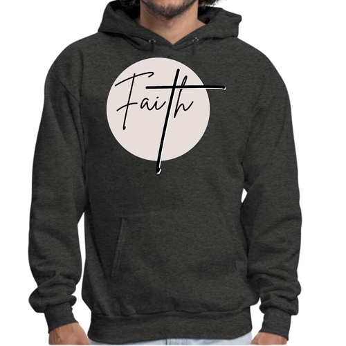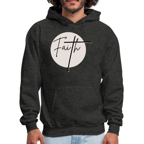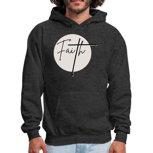 Men's Graphic Hoodie Faith in black and beige featuring a Christian affirmation design, perfect for casual wear.