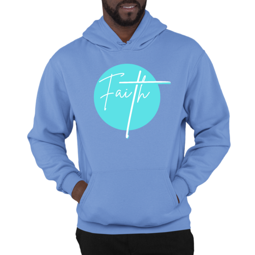 Whether you're attending a casual gathering, running errands, or simply enjoying a cozy day at home, the Men's Graphic Hoodie Faith is the ideal choice. Its eye-catching cyan blue color and meaningful graphic make it a standout piece that can be paired with jeans, shorts, or joggers. Show off your faith with pride while enjoying the comfort of this stylish hoodie.