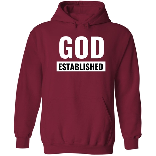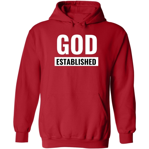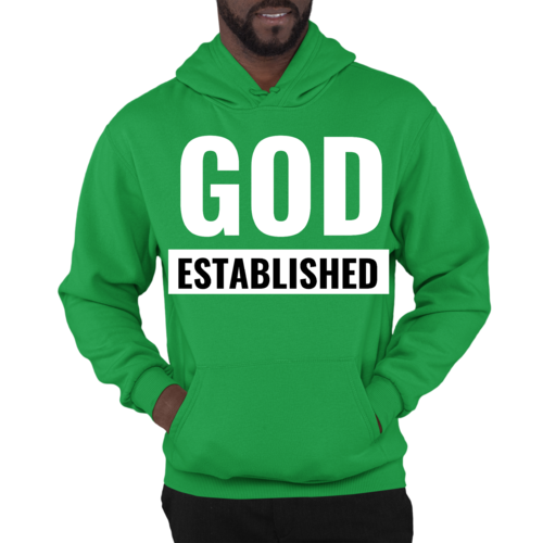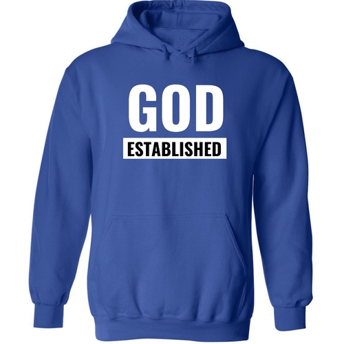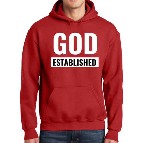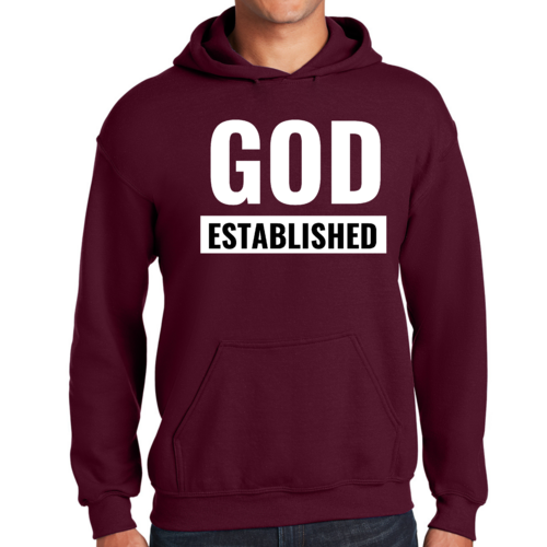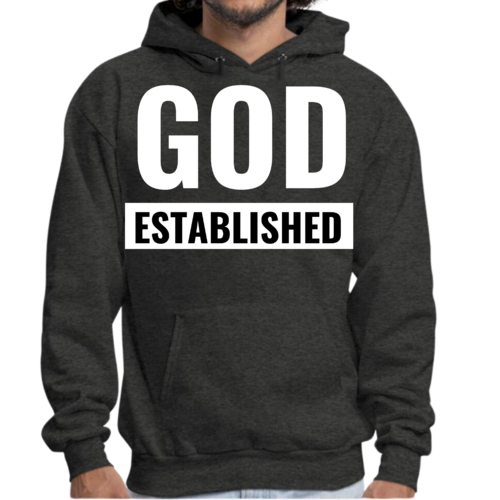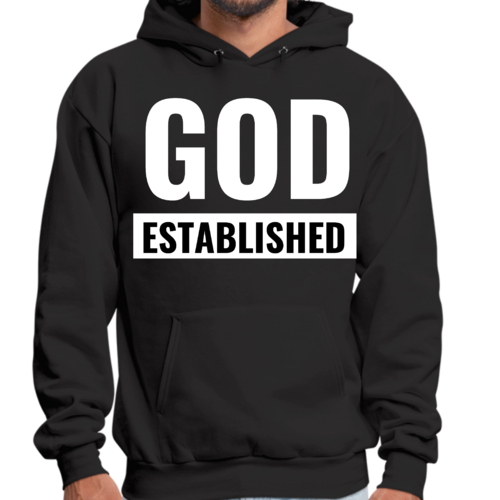 Featuring a unique design that showcases scriptural inspiration, the God Established hoodie is not just a piece of clothing; it's a statement of faith. The graphic print adds a modern touch, making it suitable for various occasions. Wear it to church, community events, or simply as a reminder of your beliefs in your daily life.