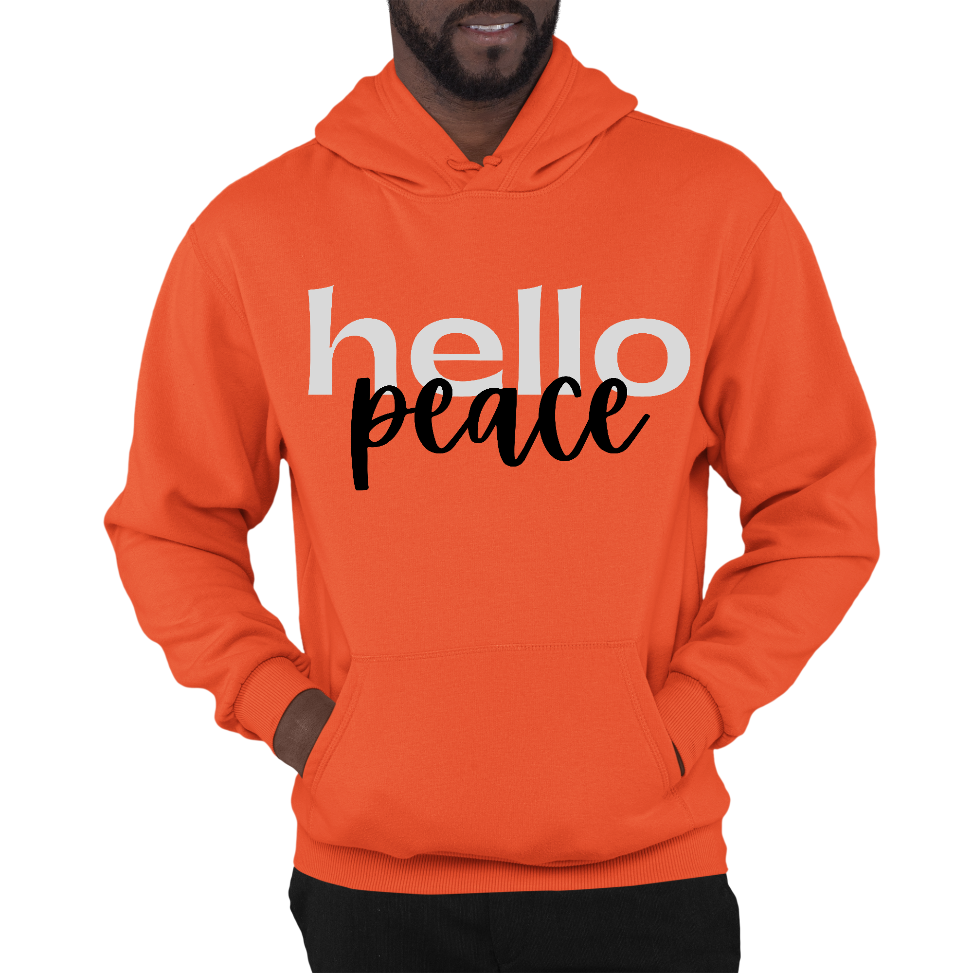 What sets the Mens Graphic Hoodie Hello Peace apart is its unique motivational graphic. The phrase 'Hello Peace' serves as a daily reminder to embrace positivity and aspire for a peaceful mindset. This hoodie is not just a piece of clothing; it's a statement of your values and aspirations.