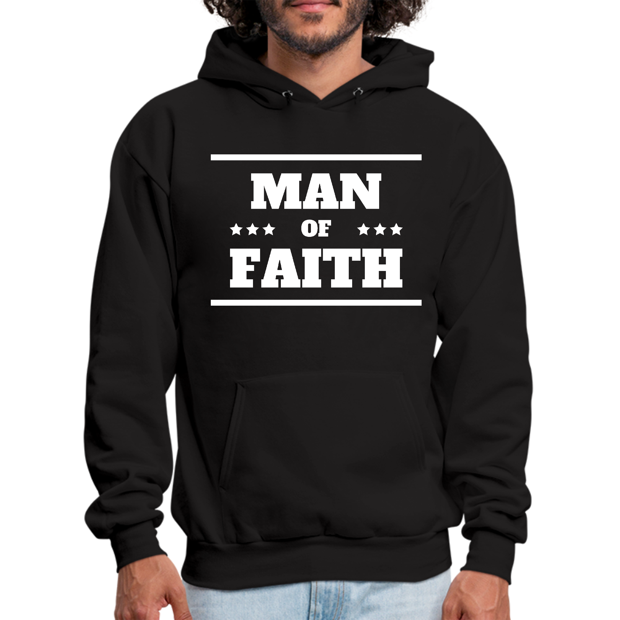 Mens Graphic Hoodie Man of Faith featuring a stylish design, drawstring neckline, and long sleeves, perfect for casual wear.