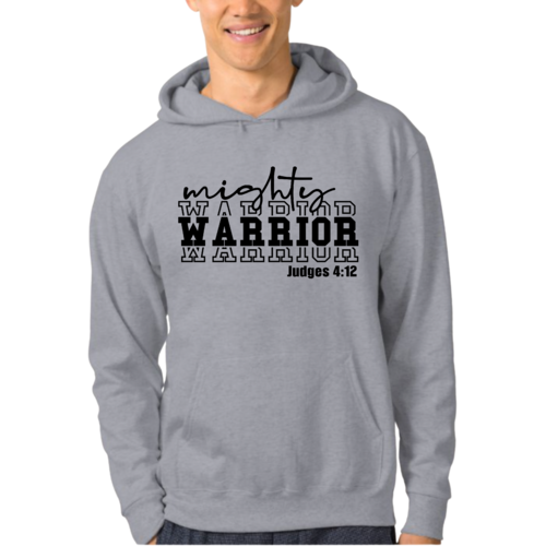 The Mens Graphic Hoodie Mighty Warrior Black Illustration is the ultimate addition to your wardrobe, combining style, comfort, and durability. This unisex graphic hoodie is designed for those who appreciate both fashion and functionality. Made from a high-quality 50/50 cotton and polyester blend, this hoodie offers a soft touch against the skin while ensuring long-lasting wear. Whether you're lounging at home or heading out for a casual outing, this hoodie is a versatile choice that fits seamlessly into any lifestyle.