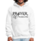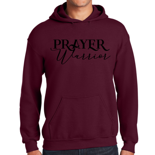 Featuring a striking Prayer Warrior script illustration, this hoodie not only serves as a comfortable garment but also as a statement piece. The graphic design is perfect for those who want to express their faith and values through their clothing. The black color adds versatility, allowing you to pair it with various outfits, from jeans to joggers.