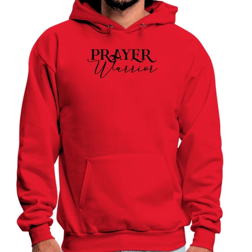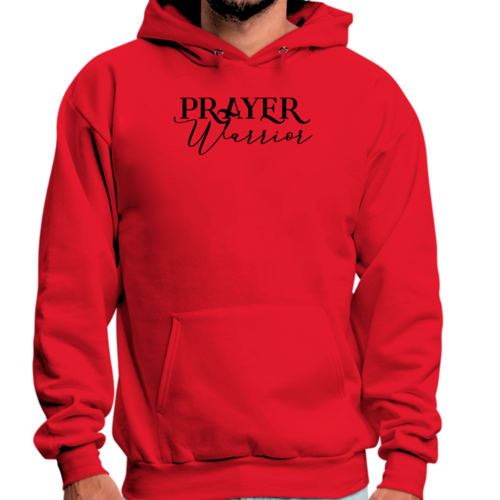 Introducing the Men's Graphic Hoodie featuring a unique Prayer Warrior script style illustration in a sleek black color. This hoodie is designed for those who appreciate comfort and style, making it a perfect addition to any wardrobe. Crafted from a high-quality 50/50 cotton and polyester blend, this hoodie offers the ideal combination of softness and durability, ensuring it will last through countless wears and washes.