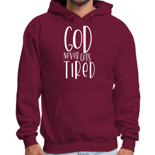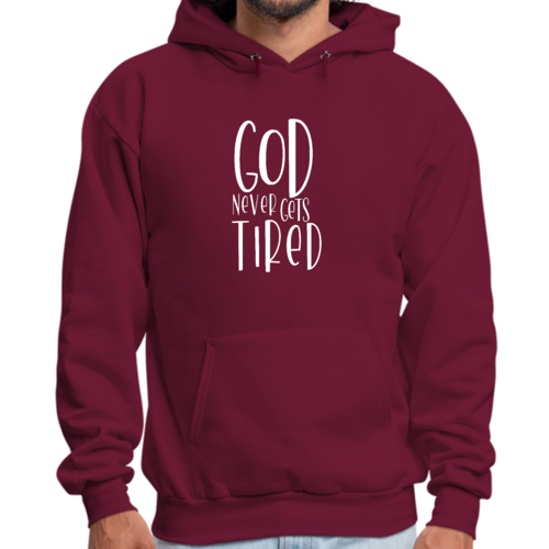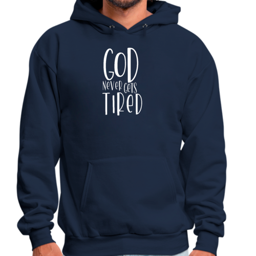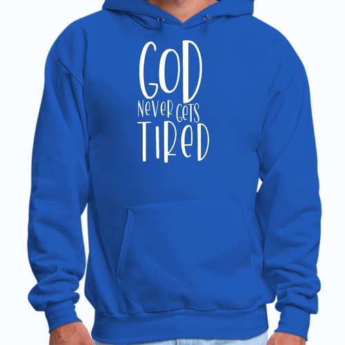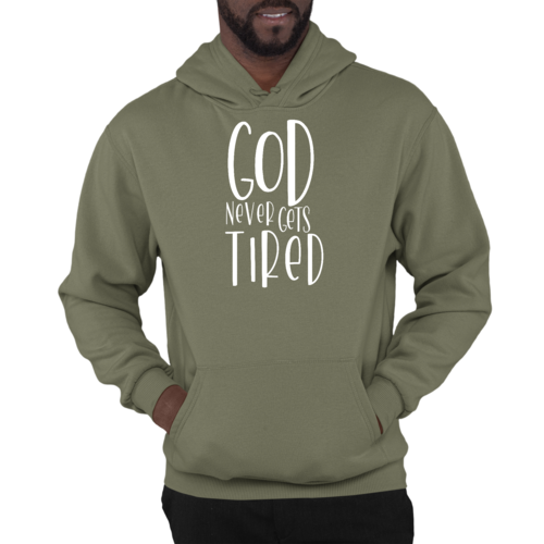 The Mens Graphic Hoodie Say it Soul - God Never Gets Tired is available in a variety of sizes to ensure a perfect fit for everyone. From small to extra-large, you can find the right size that suits your body type. Additionally, this hoodie comes in a range of colors, allowing you to choose one that best fits your personal style.