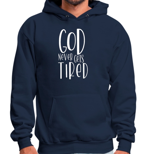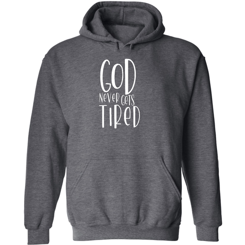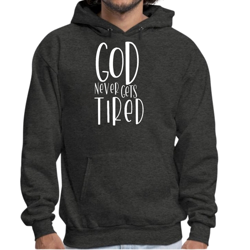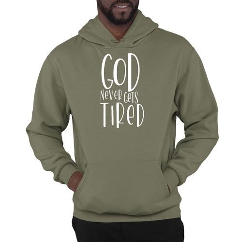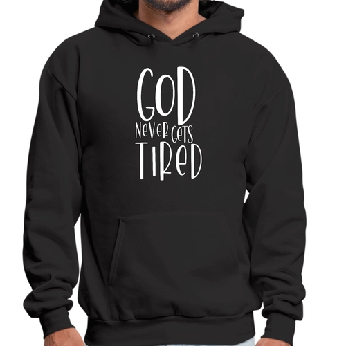 This hoodie features a trendy graphic that boldly states 'God Never Gets Tired', making it an ideal choice for those who appreciate unique and meaningful designs. The drawstring neckline allows for adjustable comfort, while the long sleeves provide warmth and style. Whether you're lounging at home, heading out with friends, or attending a casual event, this hoodie is versatile enough to fit any occasion.