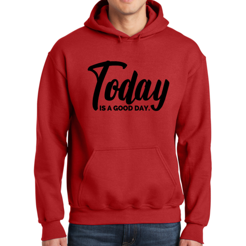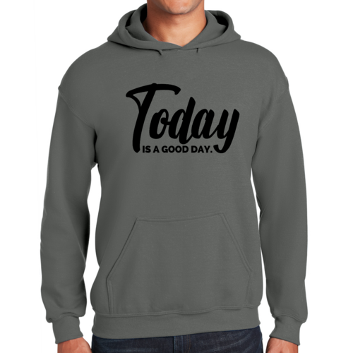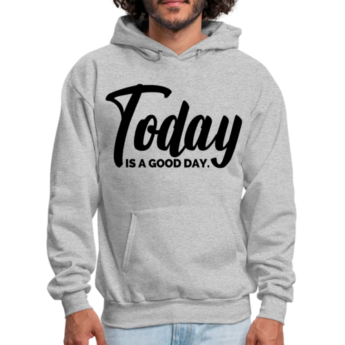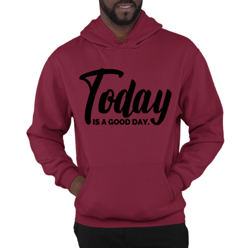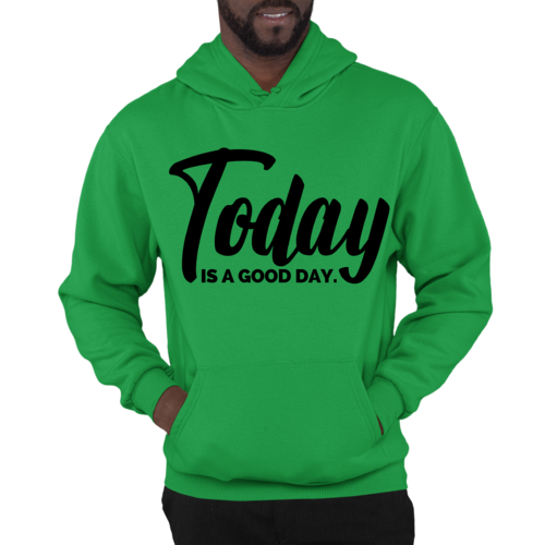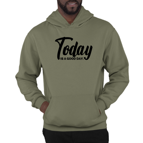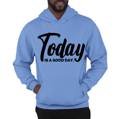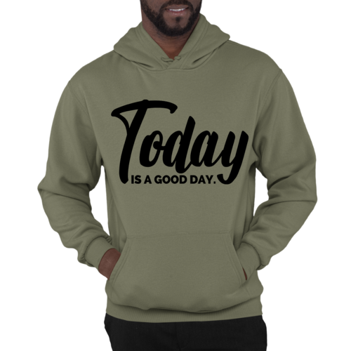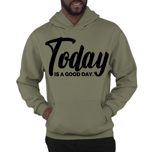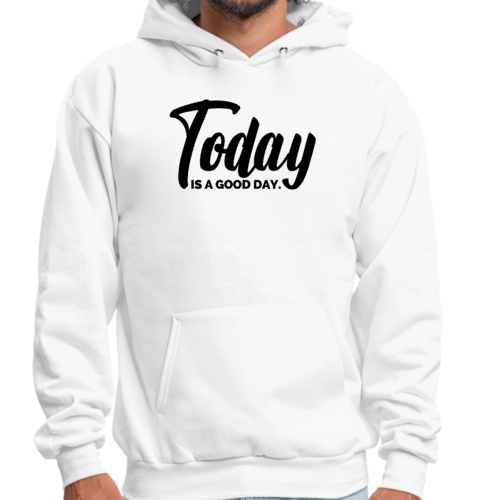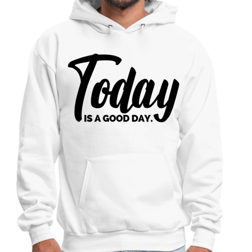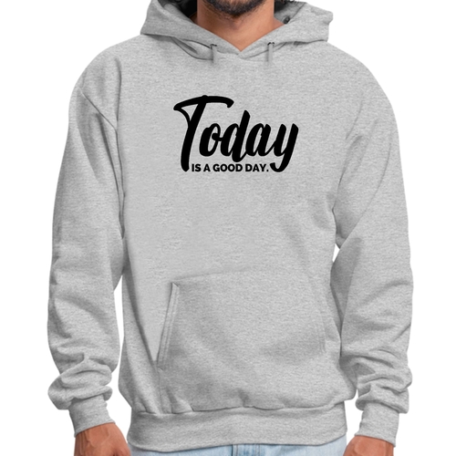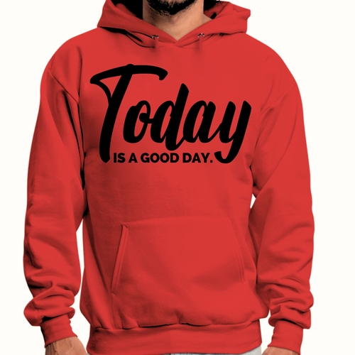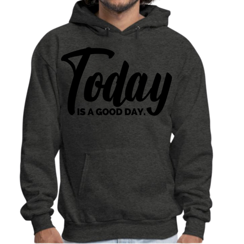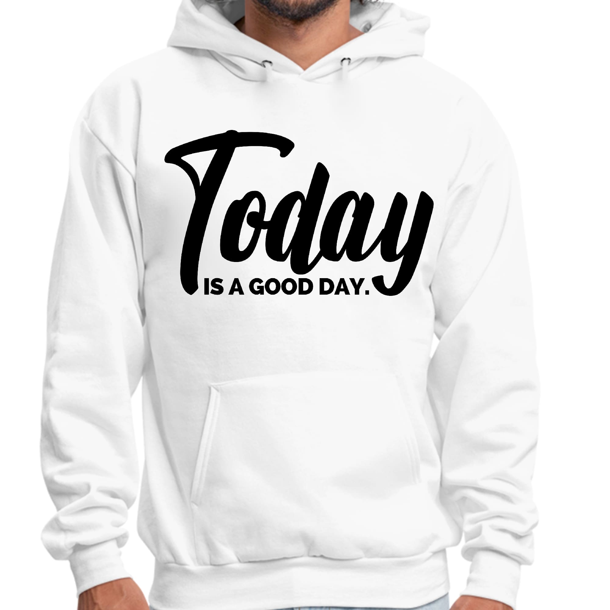 Introducing the Men's Graphic Hoodie, a stylish and comfortable addition to your wardrobe that features the uplifting message, 'Today is a Good Day'. This hoodie is designed for those who appreciate both fashion and comfort, making it a perfect choice for casual outings, lounging at home, or even running errands. The black illustration adds a touch of sophistication while promoting a positive mindset.