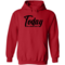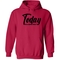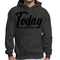 Men's black graphic hoodie with 'Today is a Good Day' illustration, featuring a drawstring neckline and long sleeves.