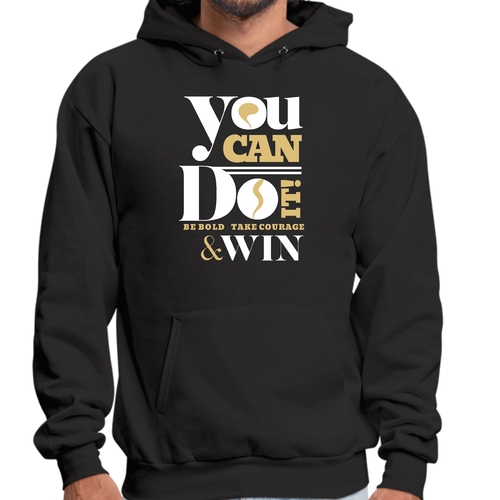In summary, the Men's Graphic Hoodie: You Can Do It - Be Bold Take Courage Win is more than just a hoodie; it’s a source of inspiration and a testament to your bold spirit. Don’t miss out on the opportunity to own this must-have piece that combines comfort, durability, and motivation.
