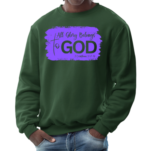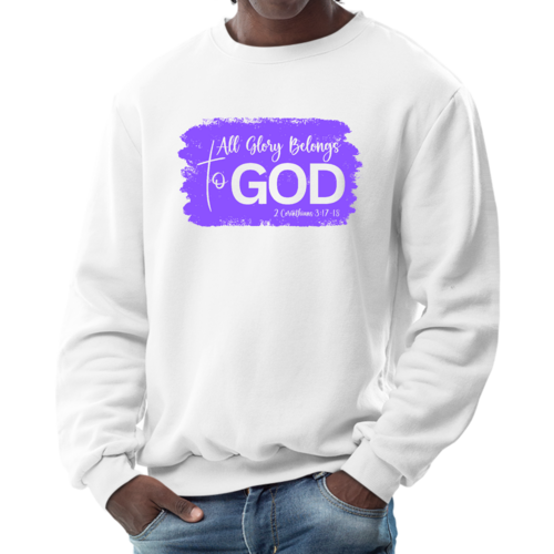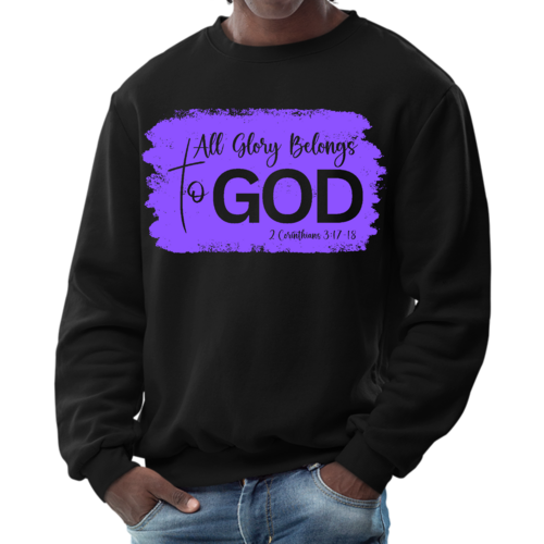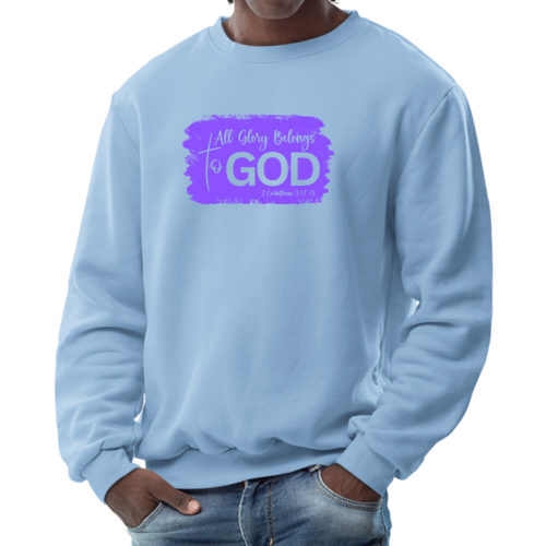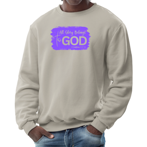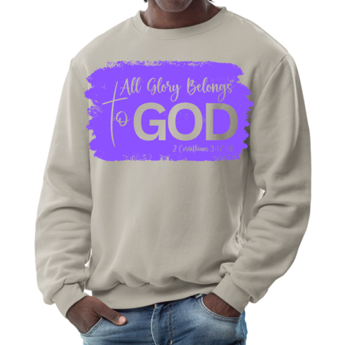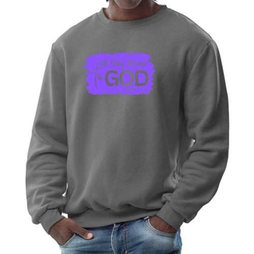 In summary, the Men's Graphic Sweatshirt featuring 'All Glory Belongs to God' in lavender is a must-have for anyone looking to combine faith and fashion. With its comfortable fit, quality fabric, and stylish design, this sweatshirt is perfect for everyday wear. Don't miss out on the opportunity to add this versatile piece to your wardrobe today!