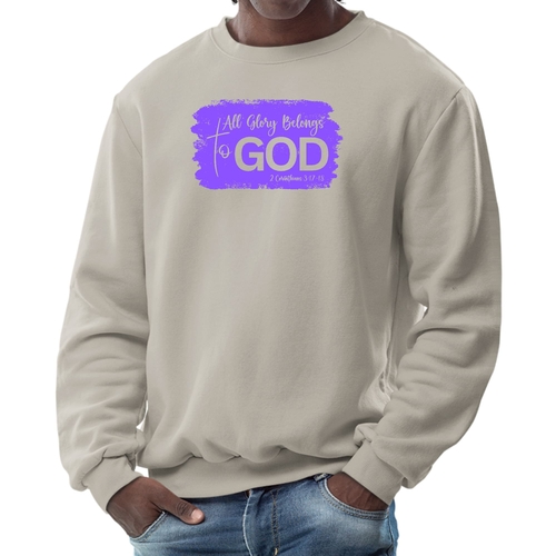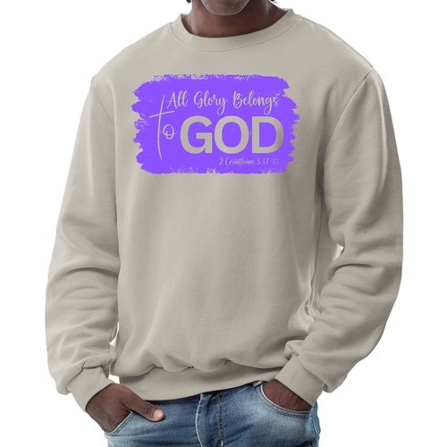 Introducing the Men's Graphic Sweatshirt, featuring the inspiring phrase 'All Glory Belongs to God' in a beautiful lavender hue. This sweatshirt is not just a piece of clothing; it is a statement of faith and style. Made from a comfortable blend of 50% cotton and 50% polyester, this sweatshirt is designed to provide you with the ultimate comfort while showcasing your beliefs.