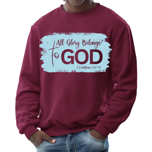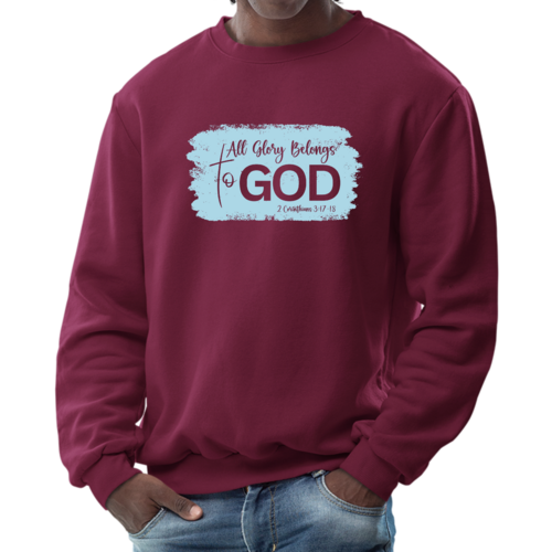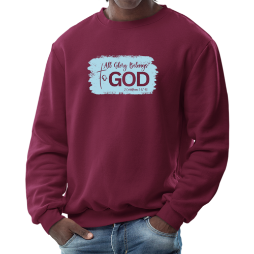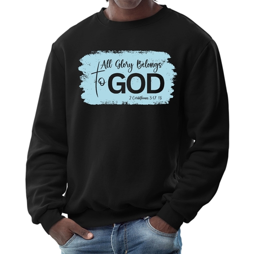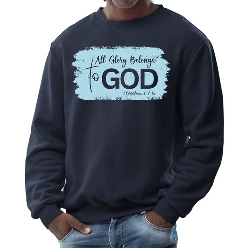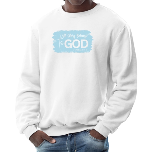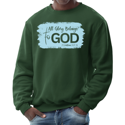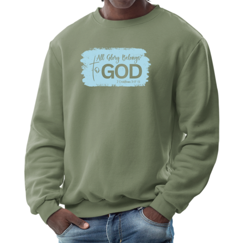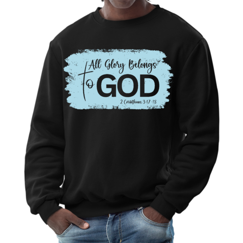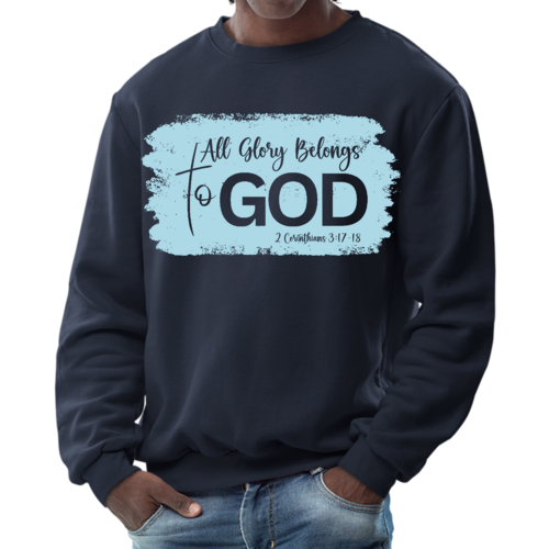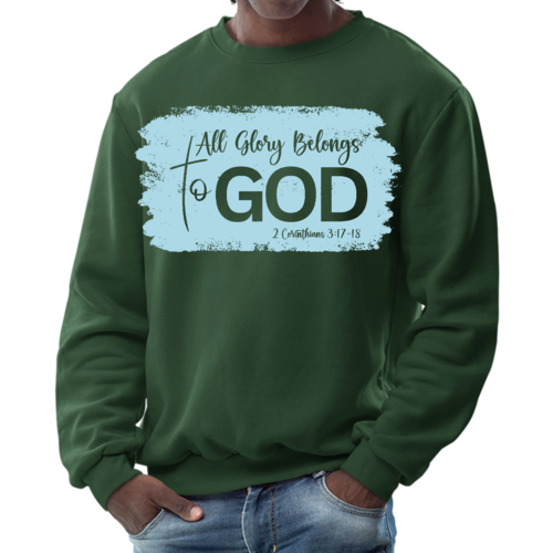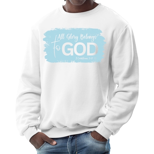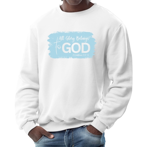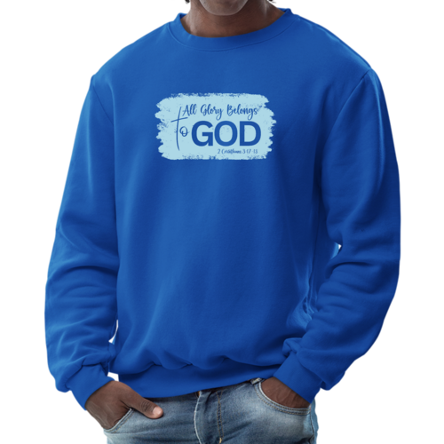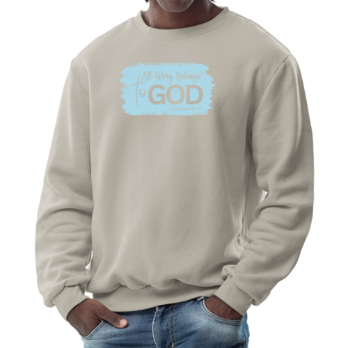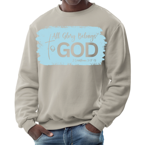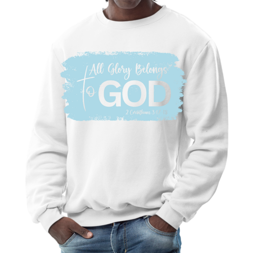 Introducing our Men's Graphic Sweatshirt, featuring the inspiring phrase 'All Glory Belongs to God' in a soothing light blue color. This sweatshirt is not just a piece of clothing; it is a statement of faith and style. Made from a comfortable blend of 50% cotton and 50% polyester, this sweatshirt is designed to provide you with the ultimate comfort while showcasing your beliefs.