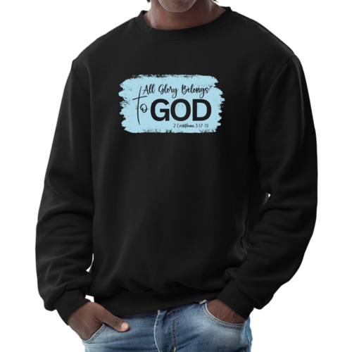 In summary, our Men's Graphic Sweatshirt, 'All Glory Belongs to God' in light blue, is a must-have for anyone looking to combine comfort, style, and faith. With its durable construction, versatile fit, and easy care instructions, this sweatshirt is designed to be a staple in your wardrobe for years to come. Embrace your faith and express your style with this beautiful piece of clothing.