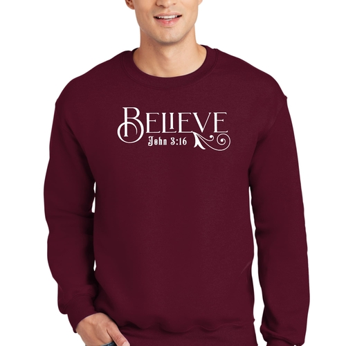 In summary, our Men's Graphic Sweatshirt featuring the Believe John 3:16 verse is a must-have for anyone looking to combine comfort with a meaningful message. With its durable construction, stylish design, and easy care instructions, this sweatshirt is perfect for everyday wear or special occasions. Don't miss out on the opportunity to own this inspirational piece of apparel!