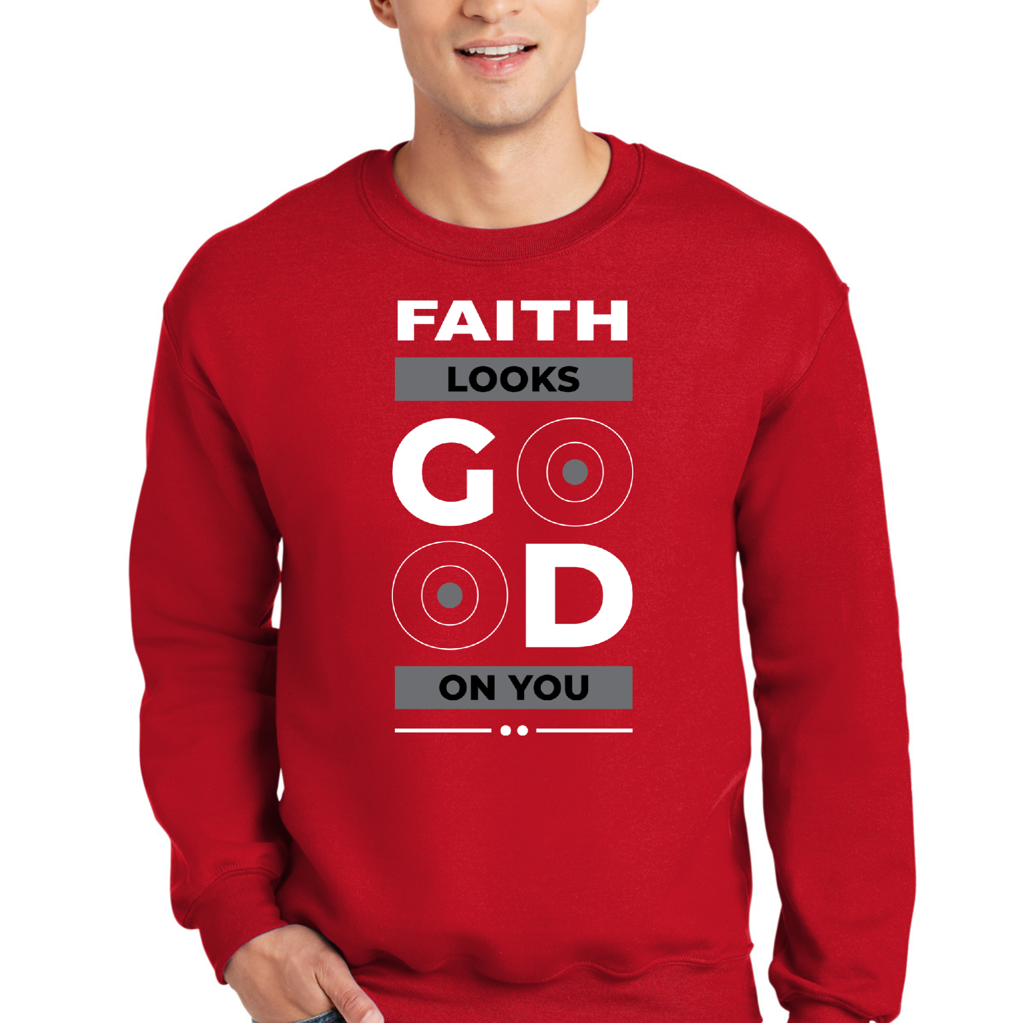 In summary, the Men's Graphic Sweatshirt, 'Faith Looks Good' is more than just a piece of clothing; it’s a lifestyle choice. With its soft fabric, unisex fit, stylish design, and durability, it’s a must-have for anyone looking to combine comfort with fashion. Don’t miss out on adding this essential piece to your collection!