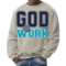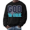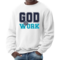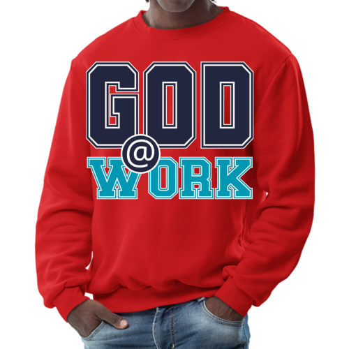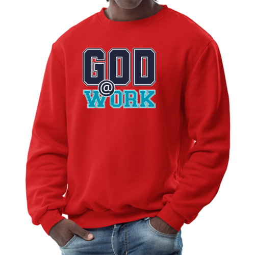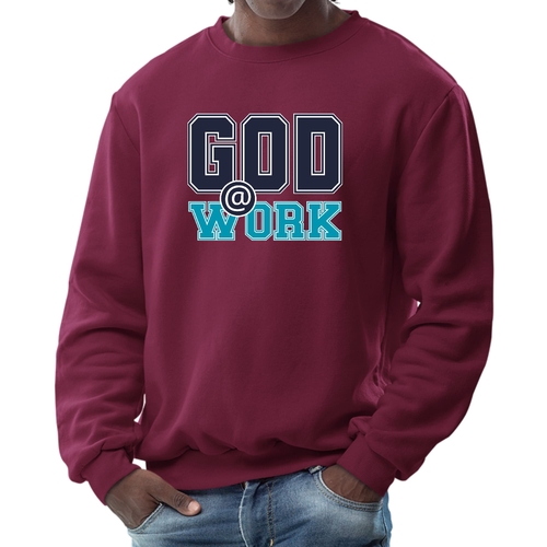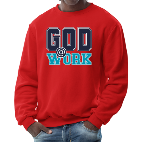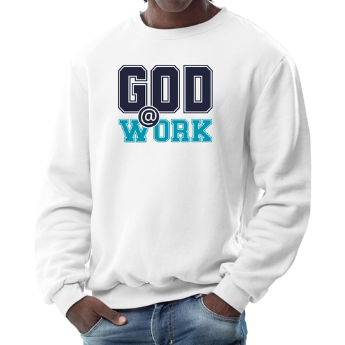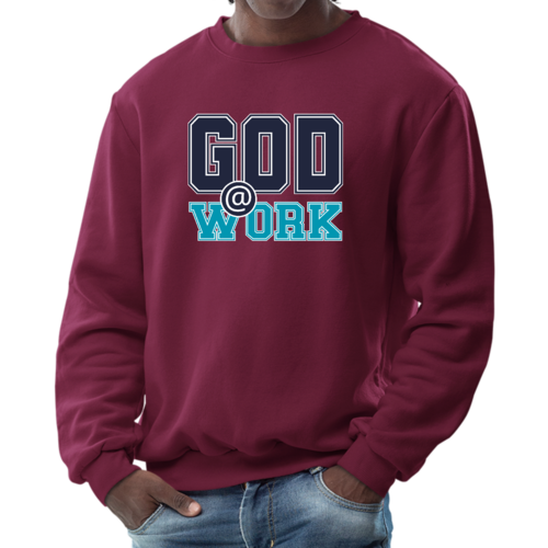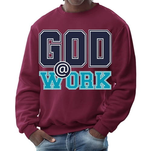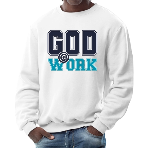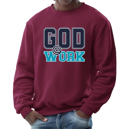 The long sleeve design of this sweatshirt provides additional warmth, making it perfect for layering or wearing on its own. Whether you're heading out for a casual day with friends, running errands, or simply lounging at home, this sweatshirt is a versatile addition to your wardrobe. The eye-catching 'God @ Work' print not only makes a fashion statement but also reflects your personal beliefs and values.