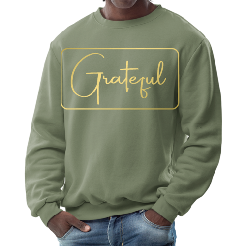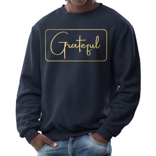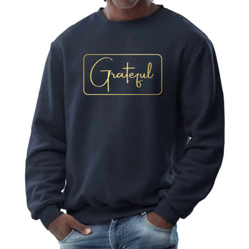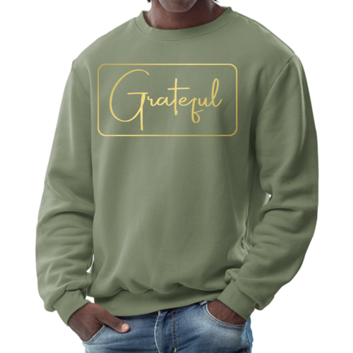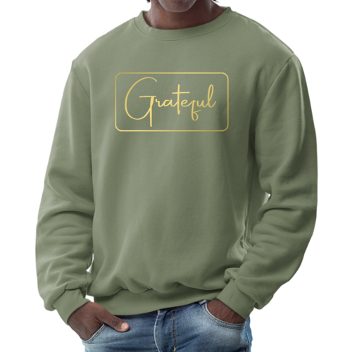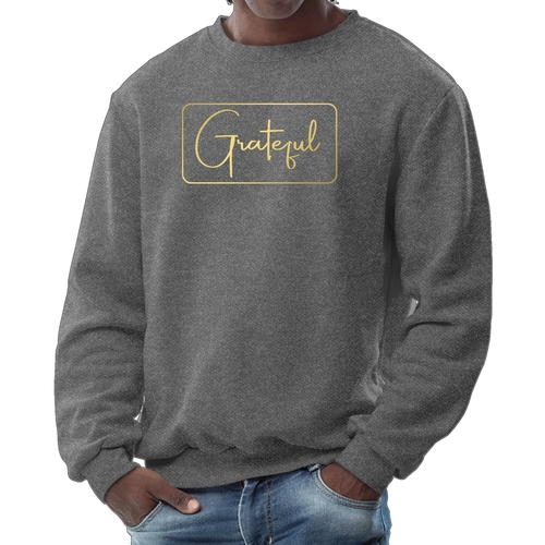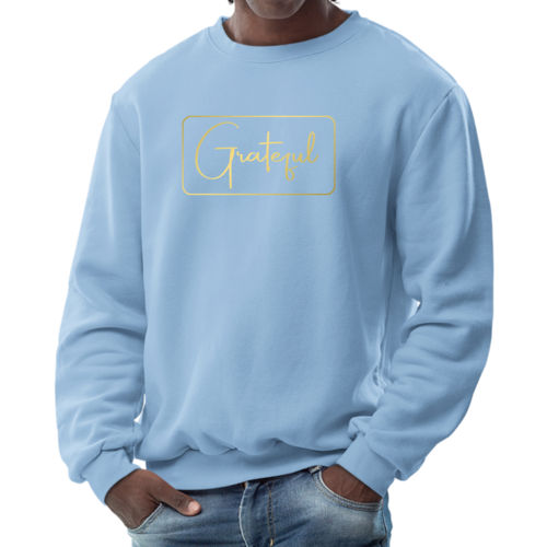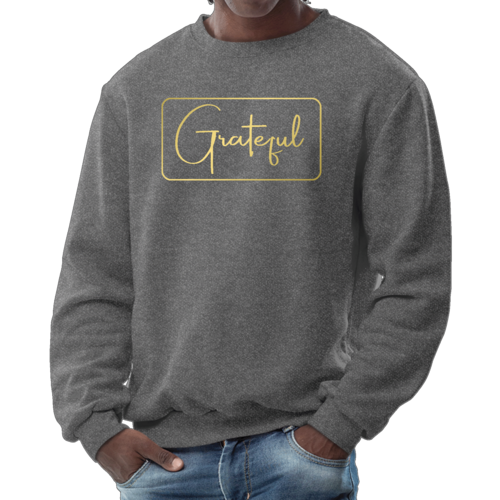 Introducing our Men's Graphic Sweatshirt, a perfect blend of style and comfort. Featuring a stunning Grateful metallic gold illustration, this sweatshirt is designed for those who appreciate both fashion and functionality. Made from a durable 50/50 cotton and polyester blend, it ensures long-lasting wear while providing the softness you desire for all-day comfort.