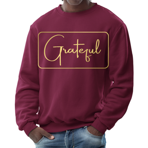 In summary, our Men's Graphic Sweatshirt with a Grateful metallic gold illustration is a must-have for anyone looking to combine comfort with style. With its durable construction, easy care, and unisex fit, it’s a versatile addition to any wardrobe. Don’t miss out on this stylish piece that showcases your personality while keeping you cozy.