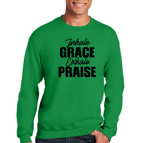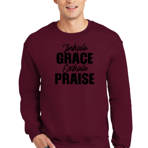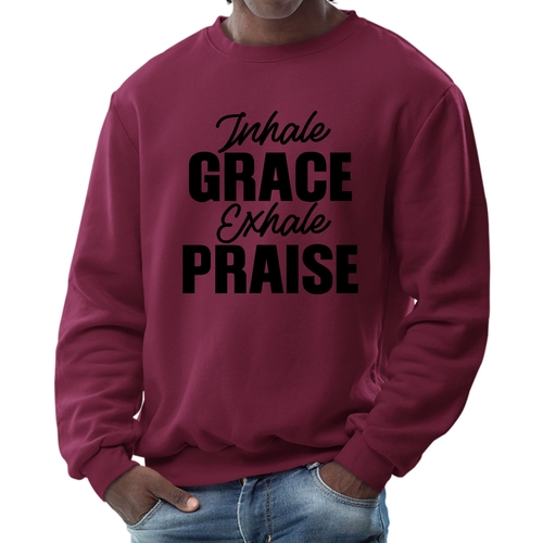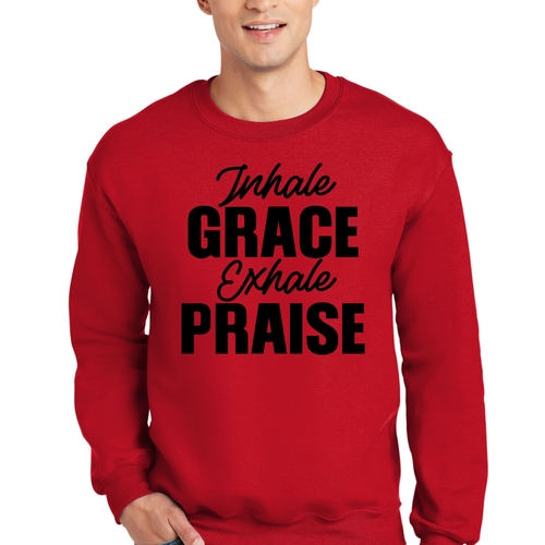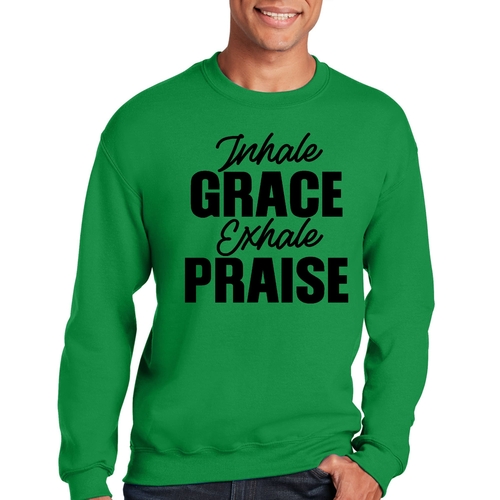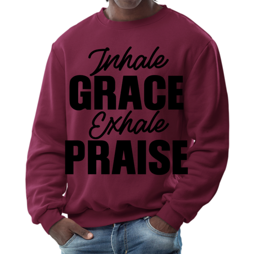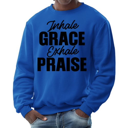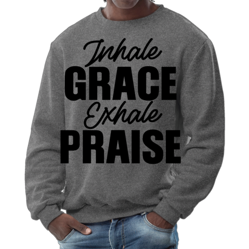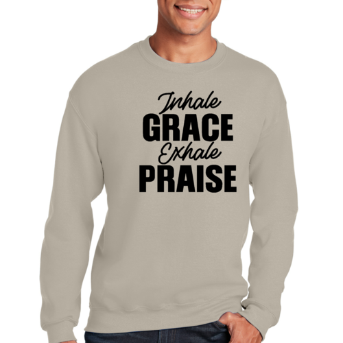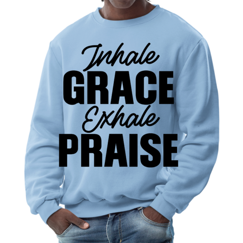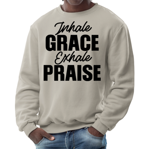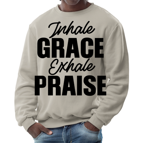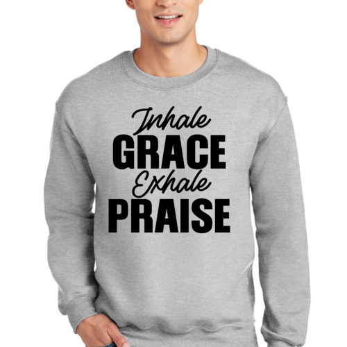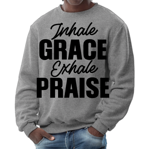 In summary, the Men's Graphic Sweatshirt featuring 'Inhale Grace Exhale Praise' is a must-have for anyone looking to combine comfort with style. Its durable construction, soft fabric, and inspiring design make it a standout piece that you won't want to miss. Add this versatile sweatshirt to your collection today and experience the perfect blend of fashion and function.