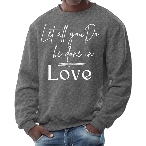 Introducing our Men's Graphic Sweatshirt, a perfect blend of comfort and inspiration. Featuring the uplifting scripture quote 'Let All You Do Be Done in Love', this sweatshirt is designed for those who appreciate both style and meaningful messages. Made from a durable 50/50 cotton and polyester blend, it ensures long-lasting wear while providing the comfort you need for all-day use.