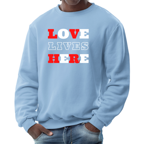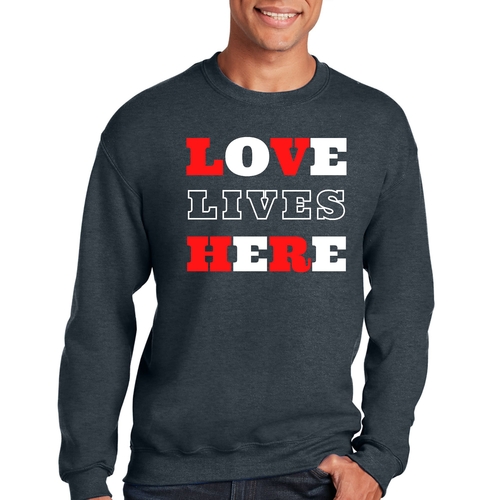 Dropship Mens Graphic Sweatshirt - Love Lives Here Christian Inspiration