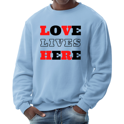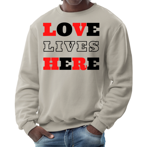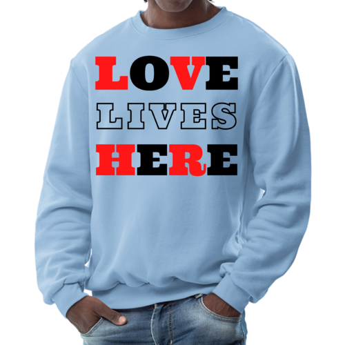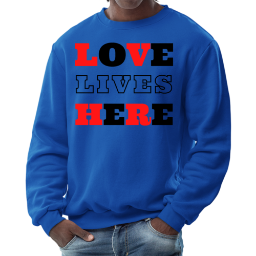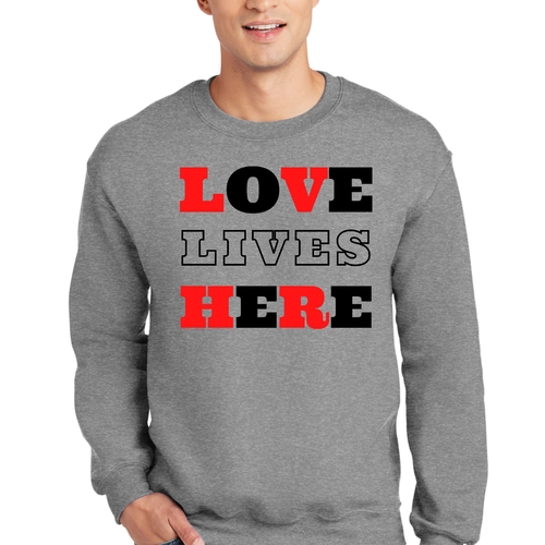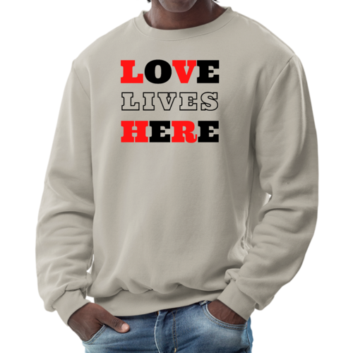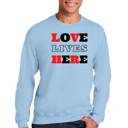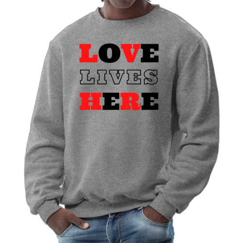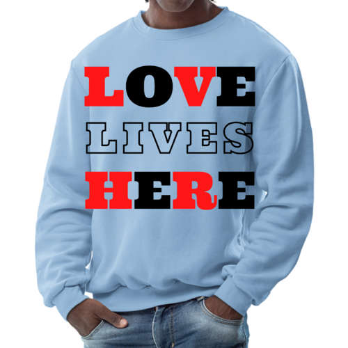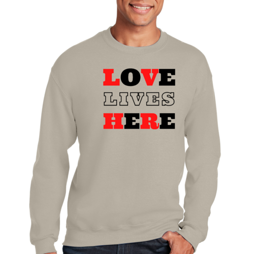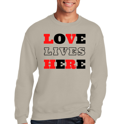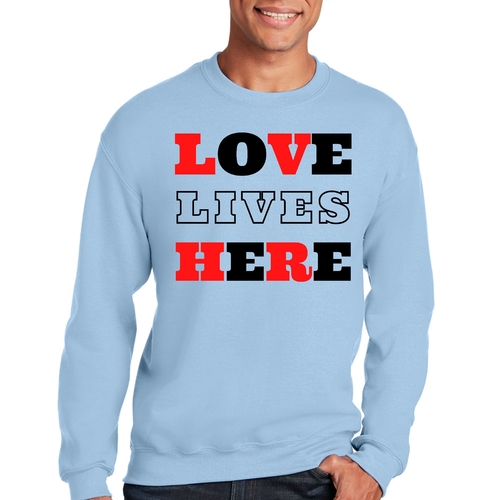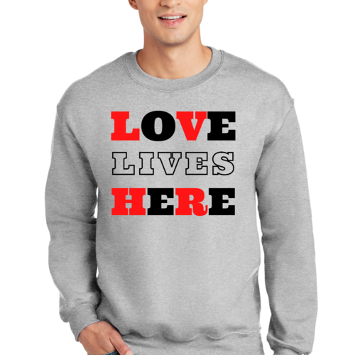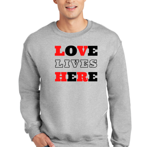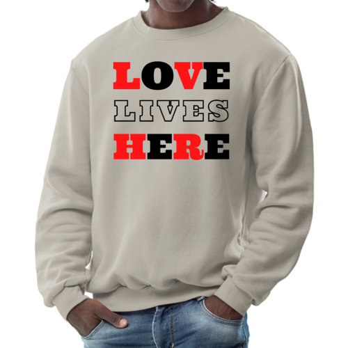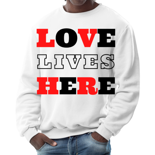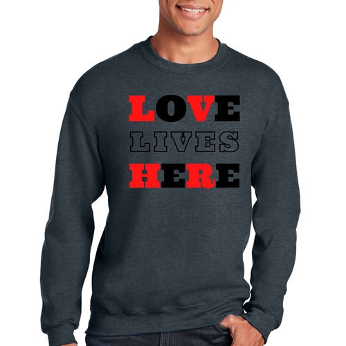 In summary, the Men's Graphic Sweatshirt, Love Lives Here is more than just a piece of clothing; it's a statement of love and faith. With its comfortable fit, stylish design, and durable construction, it’s an essential item for anyone looking to combine comfort with a meaningful message. Don't miss out on adding this versatile sweatshirt to your collection today!