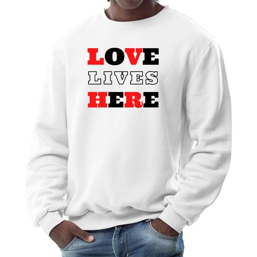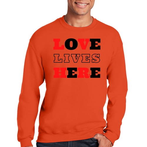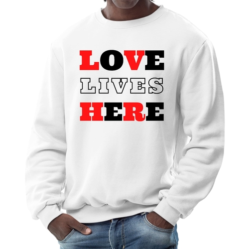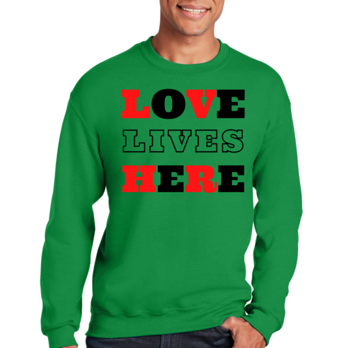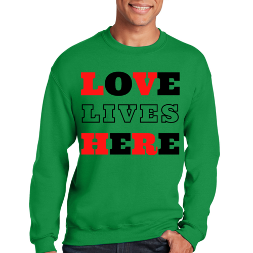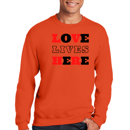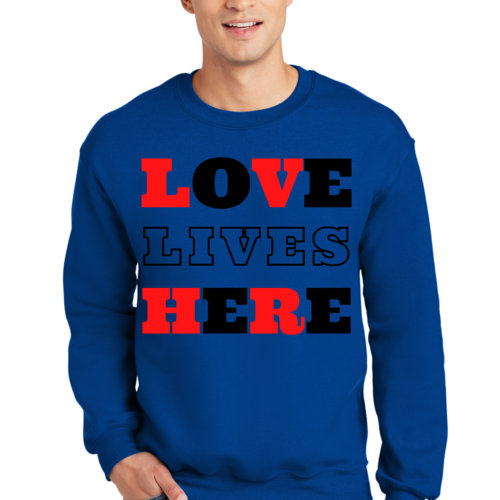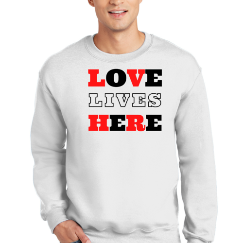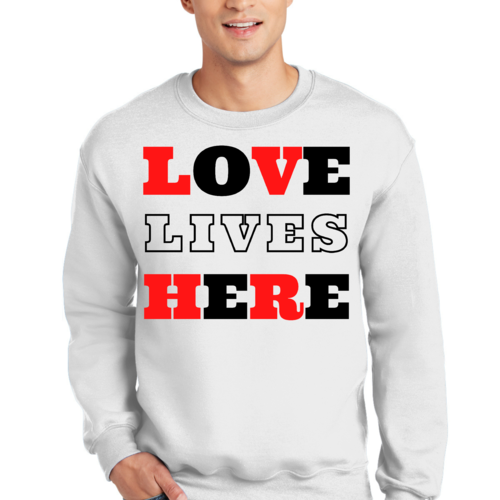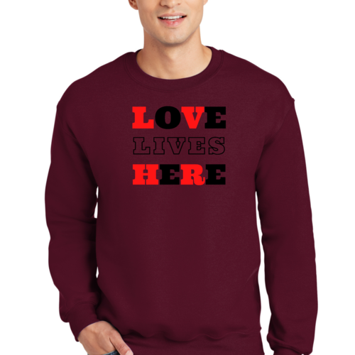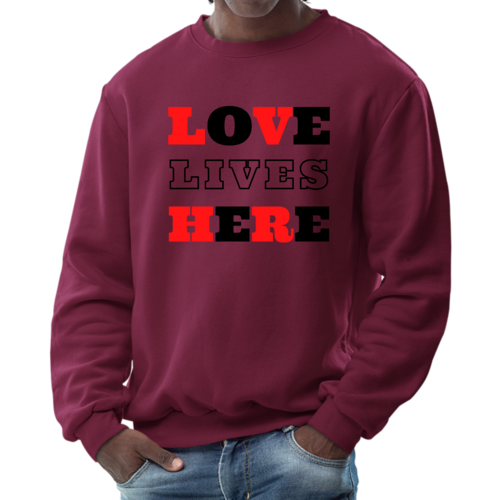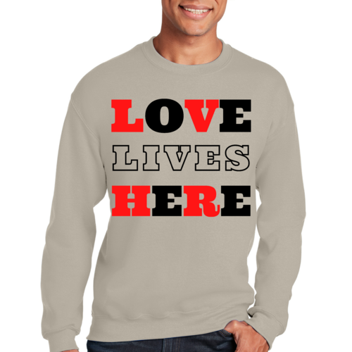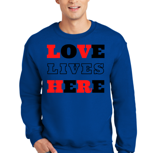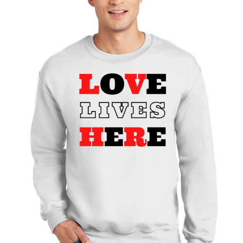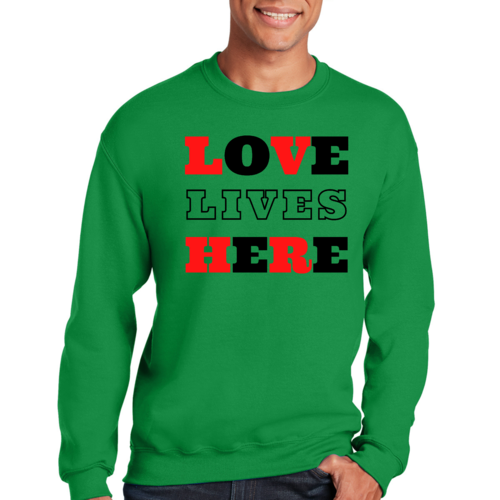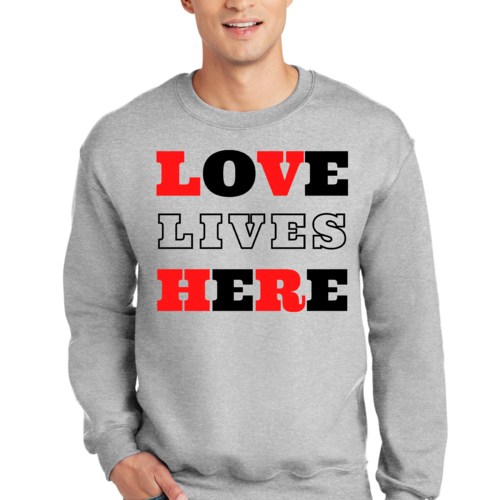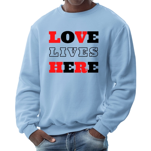 In summary, the Men's Graphic Sweatshirt, Love Lives Here is more than just a piece of clothing; it's a statement of love and faith. With its comfortable fit, stylish design, and durable construction, it’s an essential item for anyone looking to combine comfort with a meaningful message. Don't miss out on adding this versatile sweatshirt to your collection today!