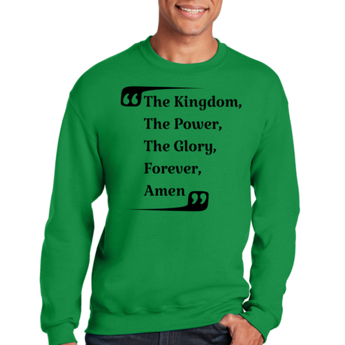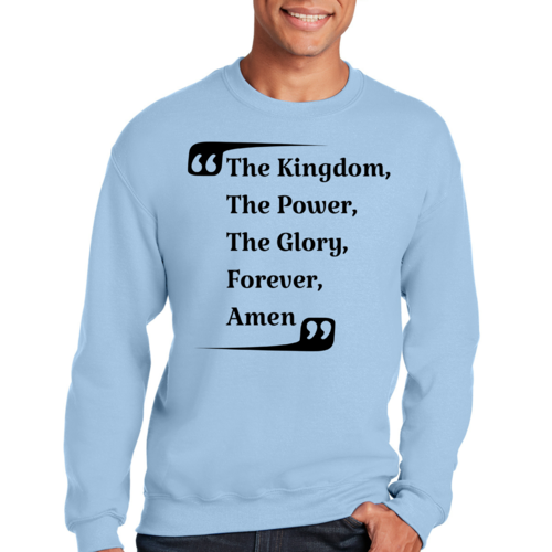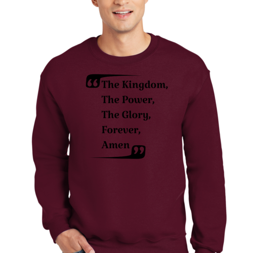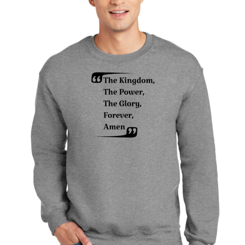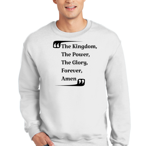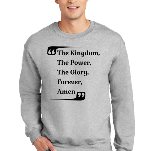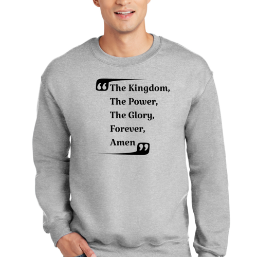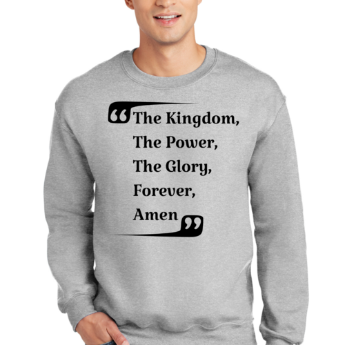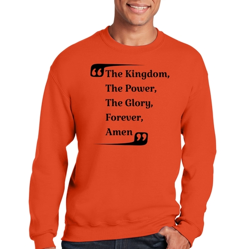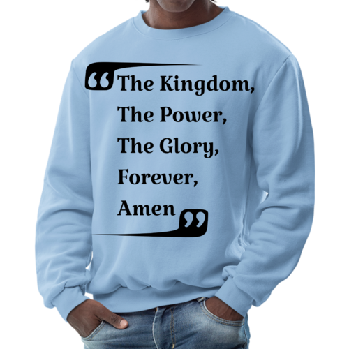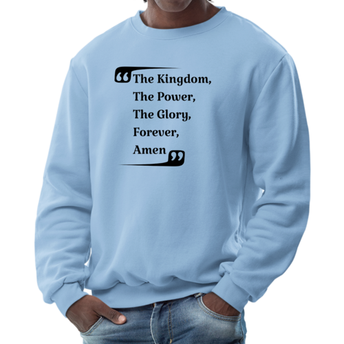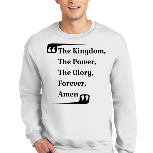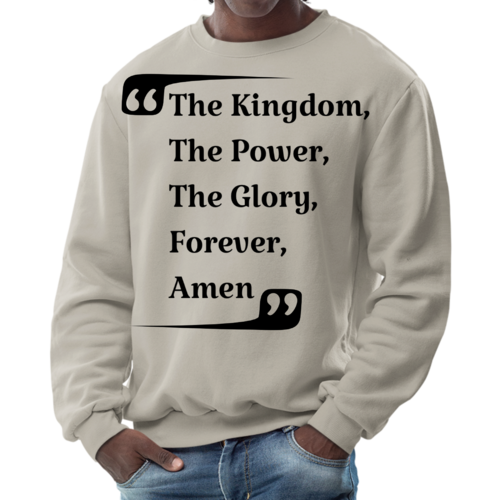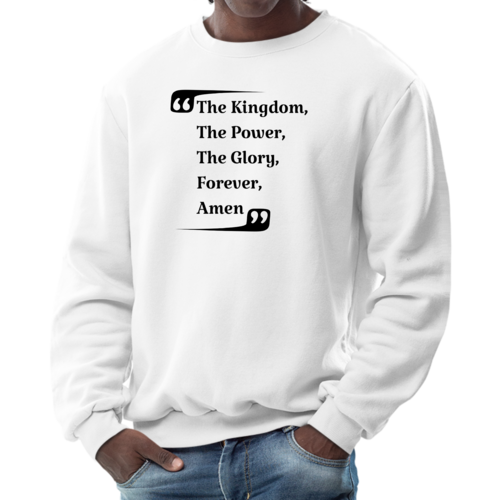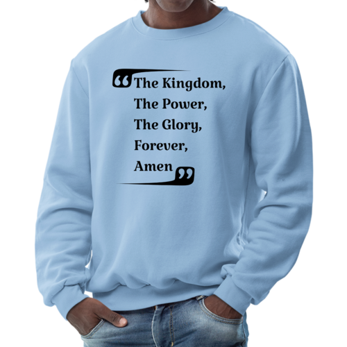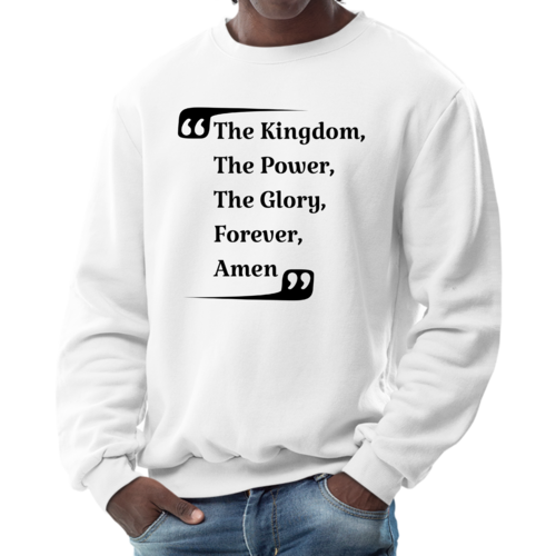 The graphic design on this sweatshirt is not only eye-catching but also meaningful. The phrase 'the Kingdom the Power the Glory Forever Amen' serves as a reminder of faith and strength, making it a great conversation starter. Wear it proudly to showcase your beliefs while staying fashionable.