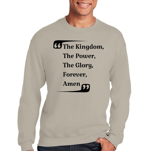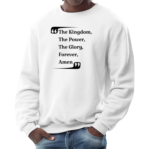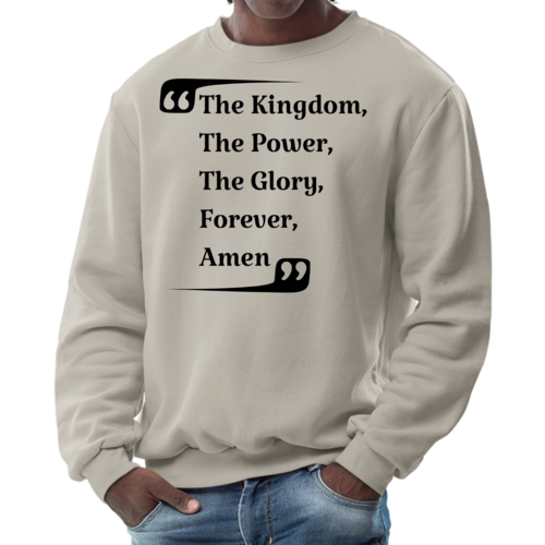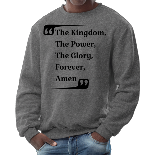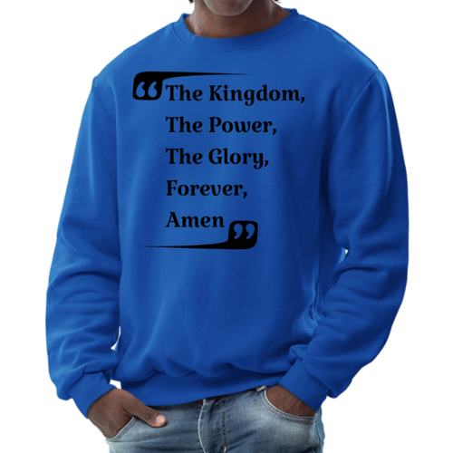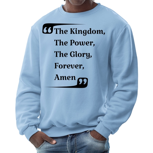 Introducing the Men's Graphic Sweatshirt, a stylish and comfortable addition to your wardrobe that features the inspiring phrase 'the Kingdom the Power the Glory Forever Amen.' This sweatshirt is designed for both men and women, making it a versatile choice for anyone looking to express their faith and style simultaneously.
