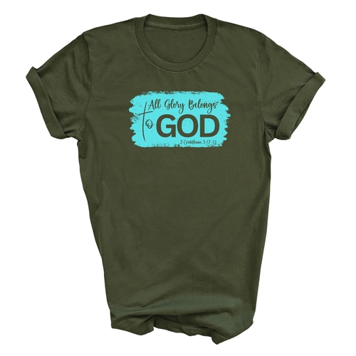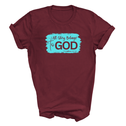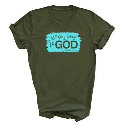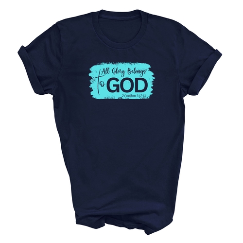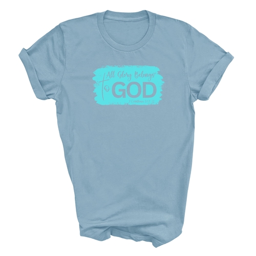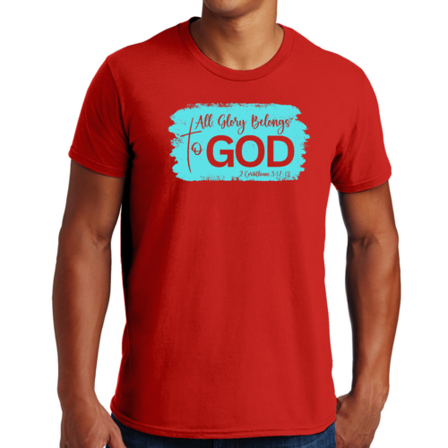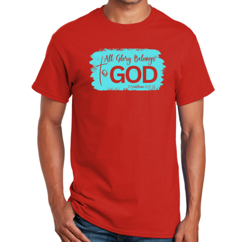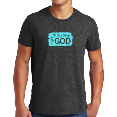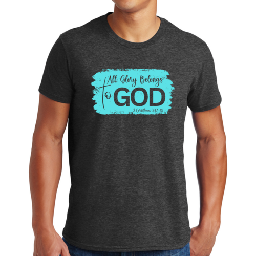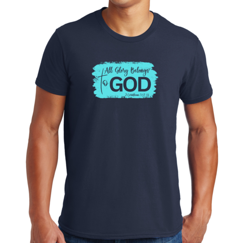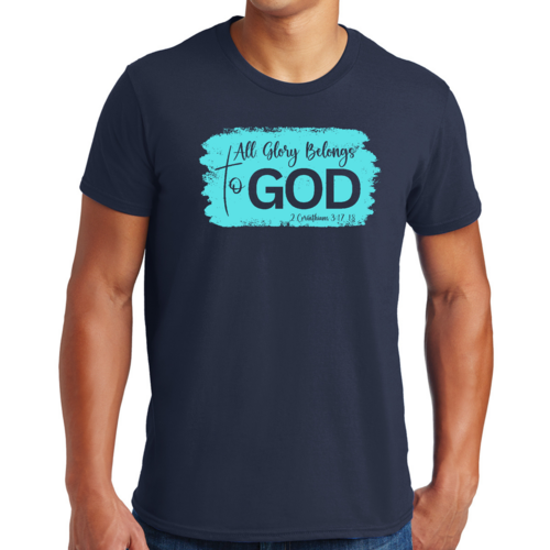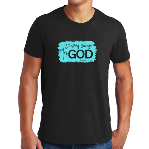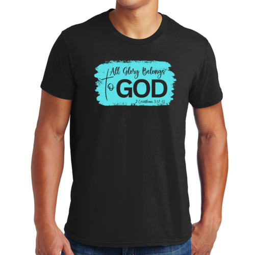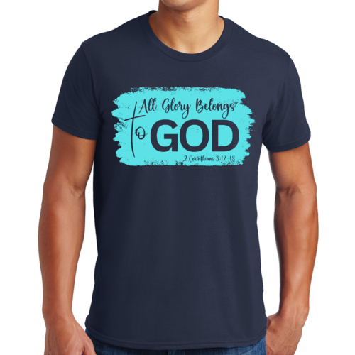 Introducing our Men's Graphic T-shirt, a stylish and comfortable way to express your faith. Featuring the inspiring phrase 'All Glory Belongs to God' in a vibrant cyan illustration, this t-shirt is perfect for any Christian man looking to showcase his beliefs through fashion. Made from soft, preshrunk cotton, this shirt ensures that you not only look good but feel great too.