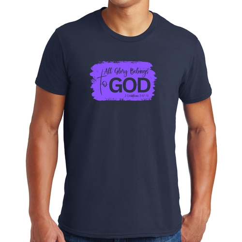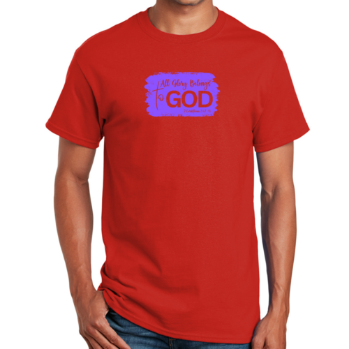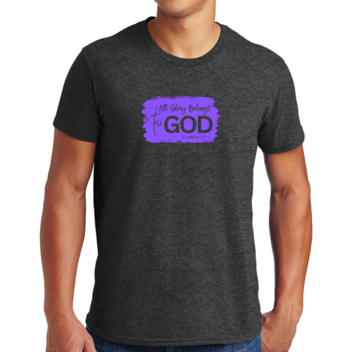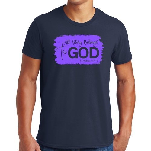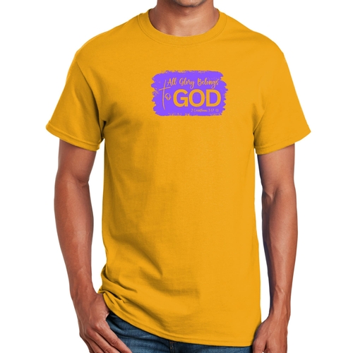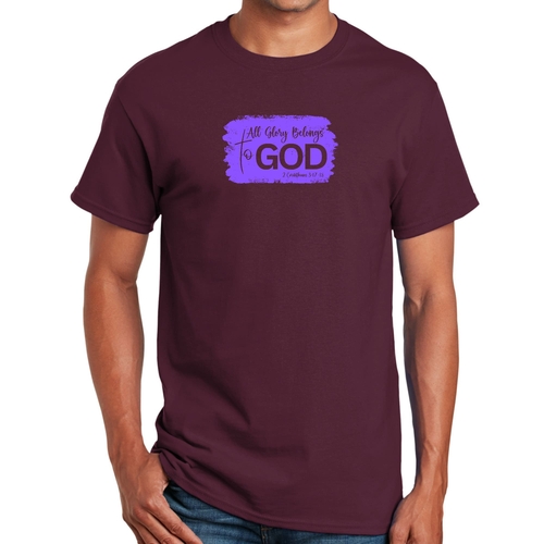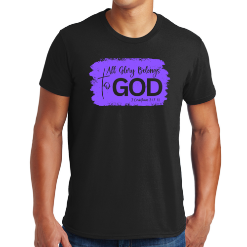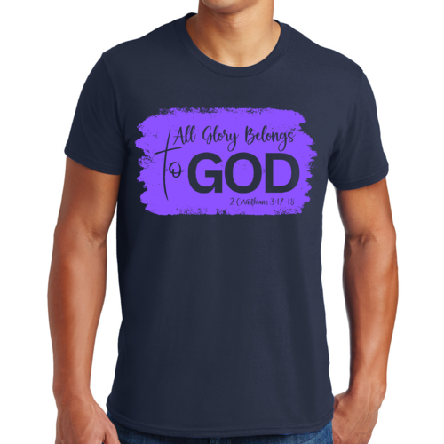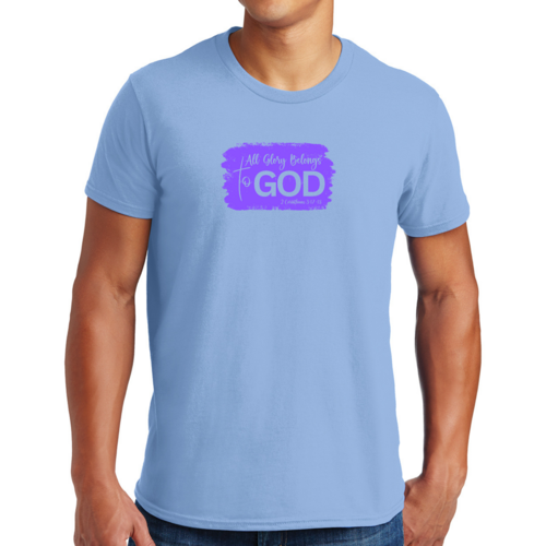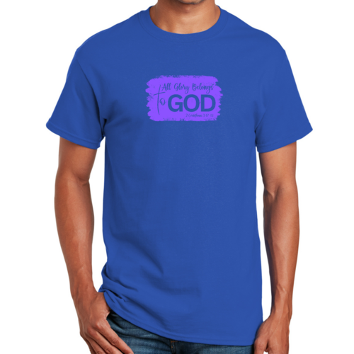 Introducing the Men's Graphic T-shirt, featuring the inspiring message 'All Glory Belongs to God' in a beautiful lavender color. This t-shirt is not just a piece of clothing; it's a statement of faith and a testament to your beliefs. Made from high-quality, preshrunk cotton, this shirt ensures that you remain comfortable throughout the day while showcasing your devotion in style.