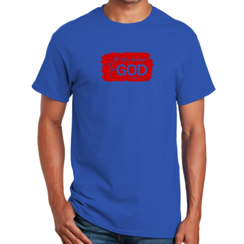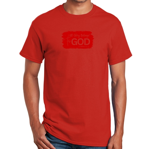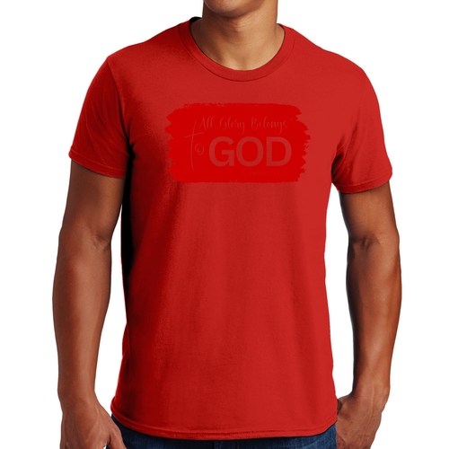 Introducing our Men's Graphic T-shirt, featuring the inspiring message 'All Glory Belongs to God' in a striking red color. This t-shirt is not just a piece of clothing; it is a statement of faith and creativity. Designed for those who appreciate unique and artistic expressions, this tee combines comfort with a bold design that stands out in any crowd.