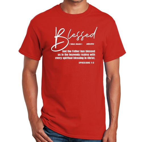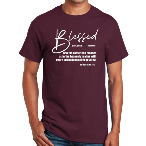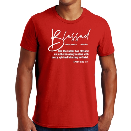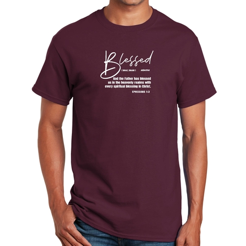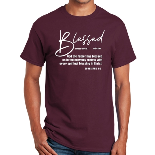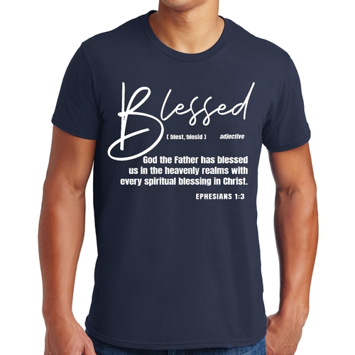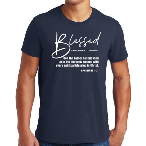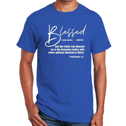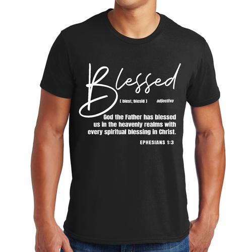 In summary, the Mens Graphic T-shirt Ephesians - Blessed with Every Spiritual Blessing is a must-have for anyone looking to add a touch of originality to their wardrobe. With its unique design, comfortable fit, and durable construction, this t-shirt is perfect for everyday wear and creative expression.