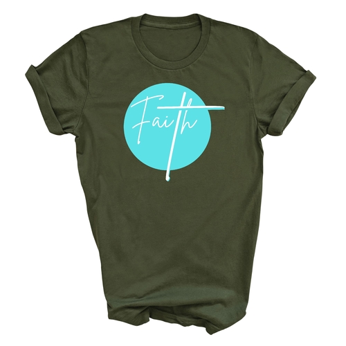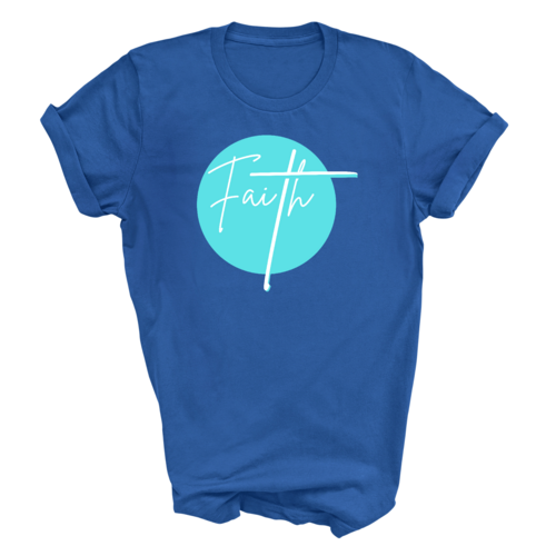 Choosing the Mens Graphic T-shirt Faith means opting for quality, comfort, and a meaningful message. Printed in the USA, this t-shirt supports local businesses while providing you with a product that meets high standards of craftsmanship. The vibrant cyan blue color is eye-catching and perfect for those who want to stand out while sharing their faith.