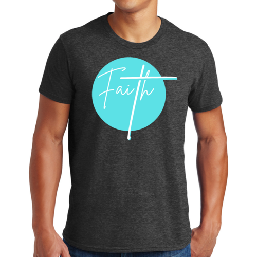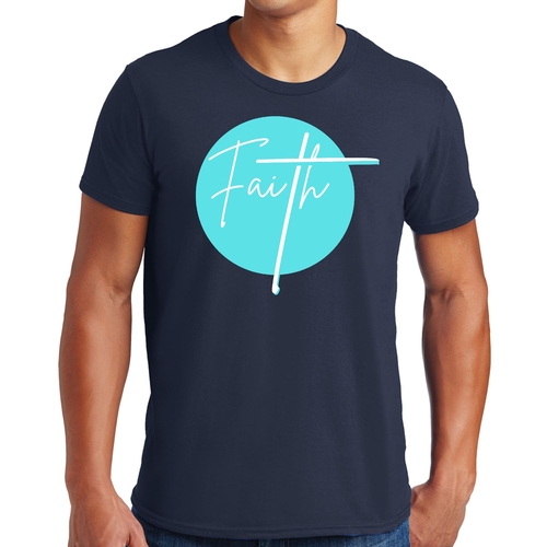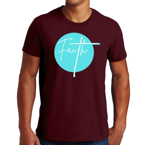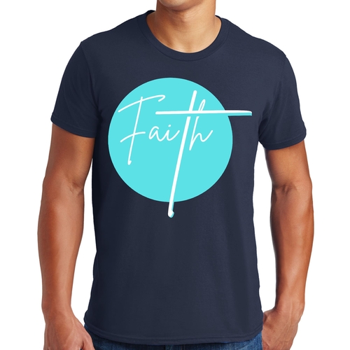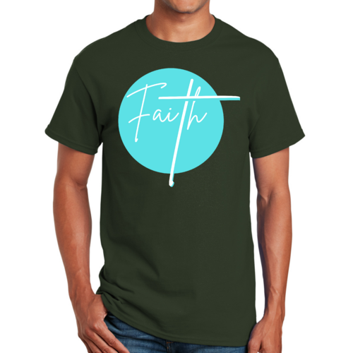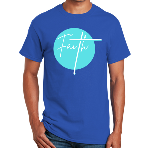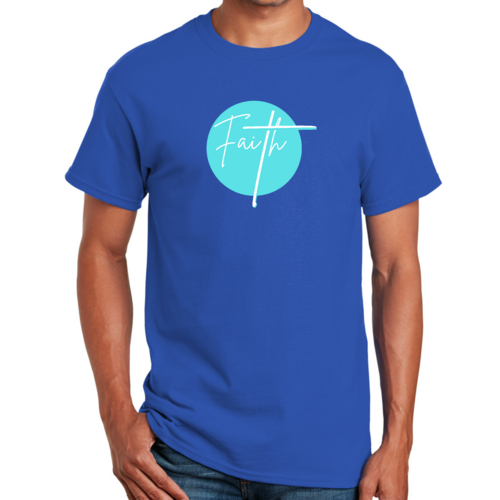 Dropship Mens Graphic T-shirt Faith - Christian Affirmation - Cyan Blue