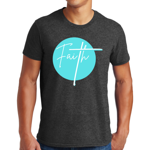 Introducing the Mens Graphic T-shirt Faith in a striking cyan blue color, designed for those who want to express their Christian beliefs with style and comfort. This t-shirt features a bold graphic affirmation that resonates with faith, making it a perfect addition to any wardrobe. Crafted from high-quality preshrunk cotton, this tee ensures that you enjoy both softness and durability, retaining its shape and feel even after multiple washes.