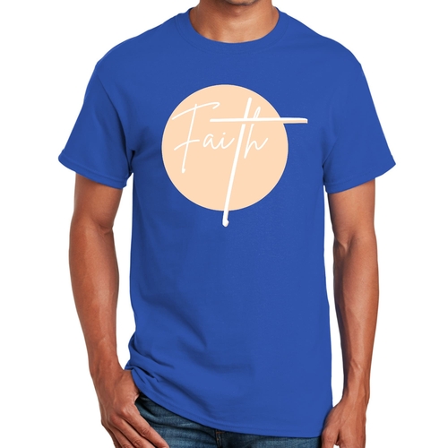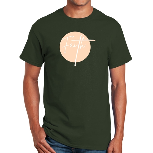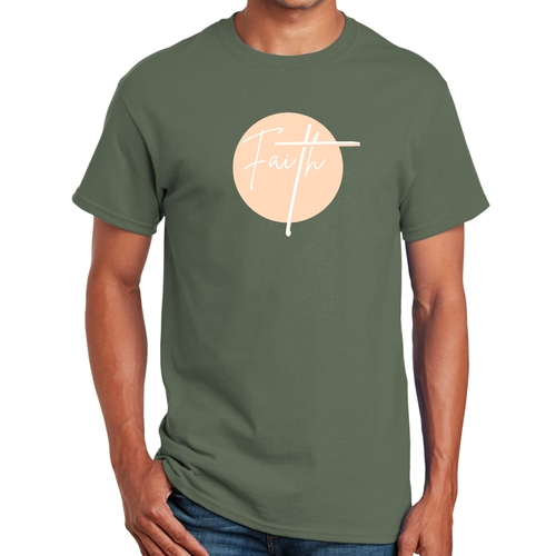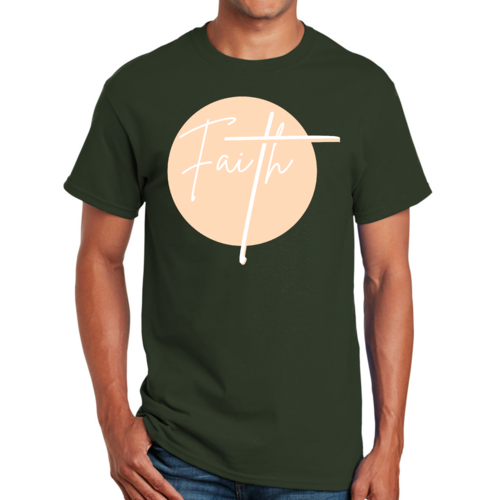 The Mens Graphic T-shirt Faith is crafted from soft, preshrunk cotton fabric that feels great against your skin. The double-needle topstitch detail adds durability, making this t-shirt a reliable choice for everyday wear. The crewneck design and rib collar provide a classic look, while the tubular body ensures a comfortable fit without any side seams.