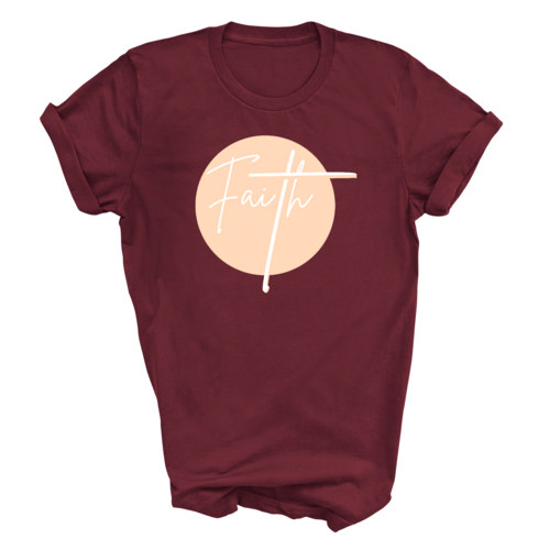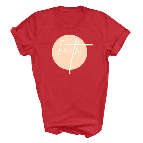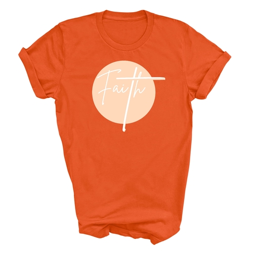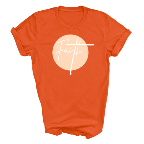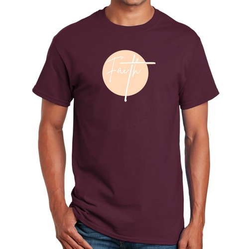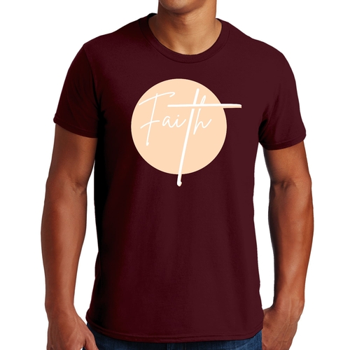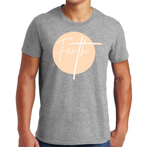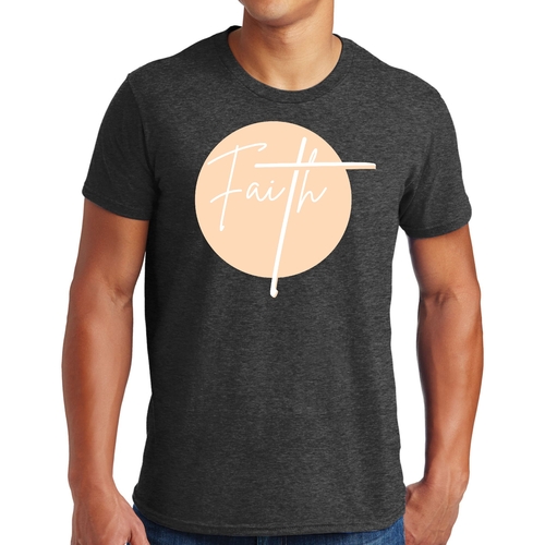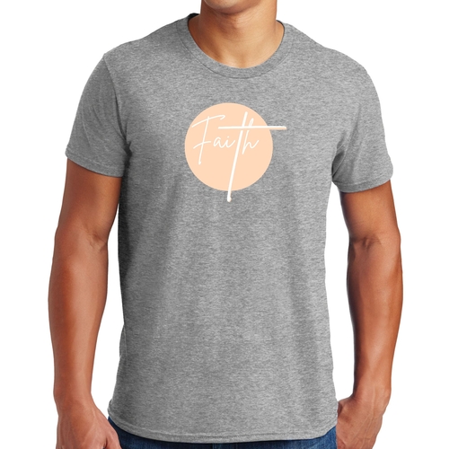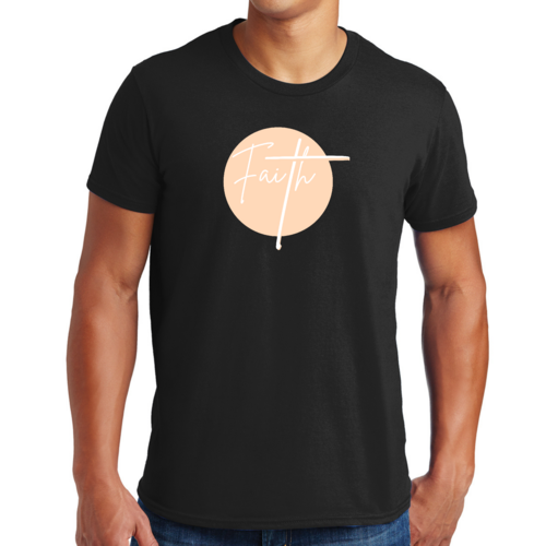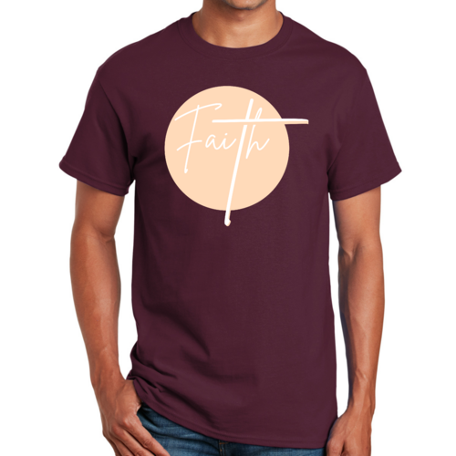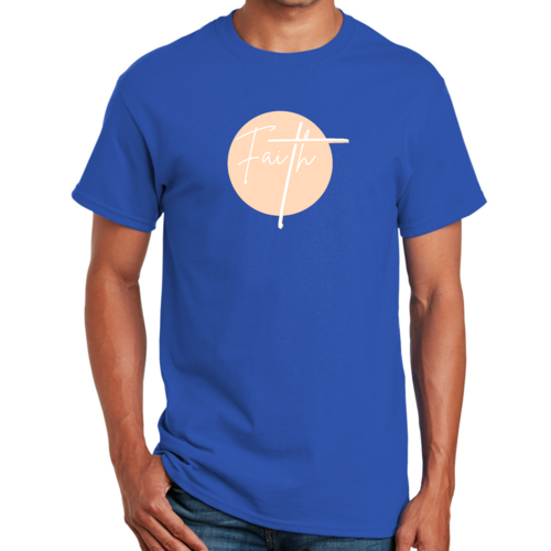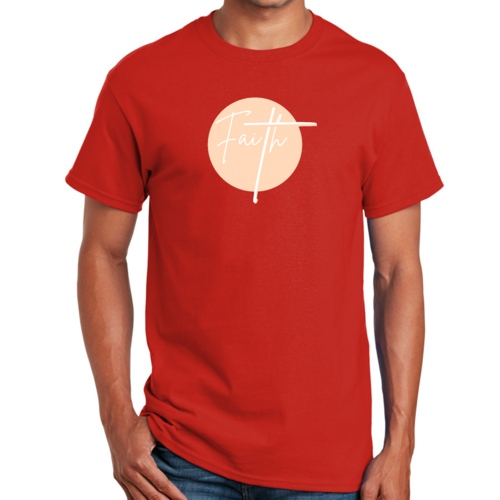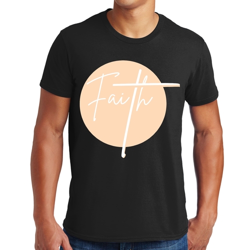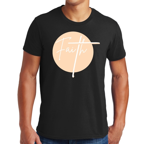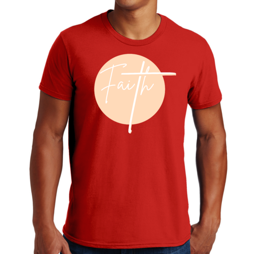 In summary, the Mens Graphic T-shirt Faith in peach and white is more than just a t-shirt; it's a way to express your beliefs while enjoying comfort and style. With its durable construction, classic fit, and easy care instructions, this t-shirt is a must-have for anyone looking to showcase their faith in a fashionable way.