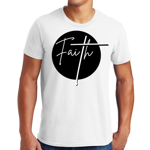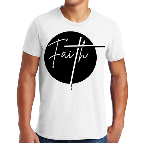 Introducing our Men's Graphic T-shirt featuring a striking Faith print, perfect for those who want to express their beliefs in style. This black and white graphic tee is not only a fashion statement but also a comfortable choice for everyday wear. Made from high-quality preshrunk cotton, this t-shirt retains its softness and size even after multiple washes, ensuring that it remains a staple in your wardrobe for years to come.