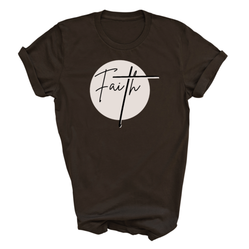 The Faith print on this T-shirt serves as a powerful Christian affirmation, making it a meaningful choice for those who wish to showcase their faith. The combination of brown and black colors creates a stylish contrast that is easy to pair with various outfits. Whether you're wearing it with jeans, shorts, or under a jacket, this T-shirt is sure to make a statement.