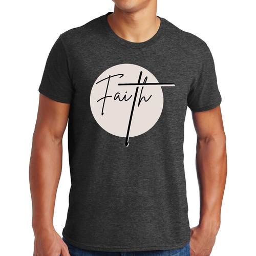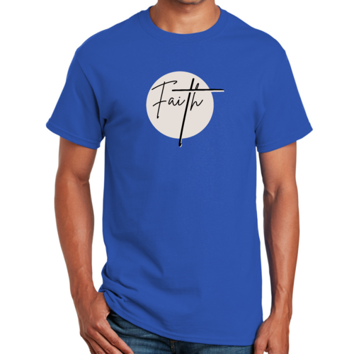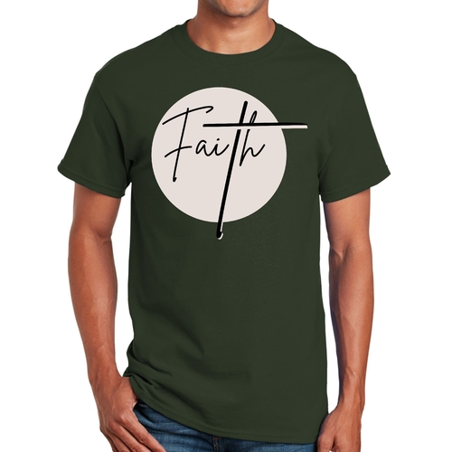 Introducing our Men's Graphic T-shirt featuring a striking Faith print, perfect for those who want to express their beliefs in style. This T-shirt is designed for comfort and durability, made from high-quality preshrunk cotton that ensures it retains its softness and size even after multiple washes. Whether you're dressing up for a casual outing or lounging at home, this T-shirt is a versatile addition to your wardrobe.