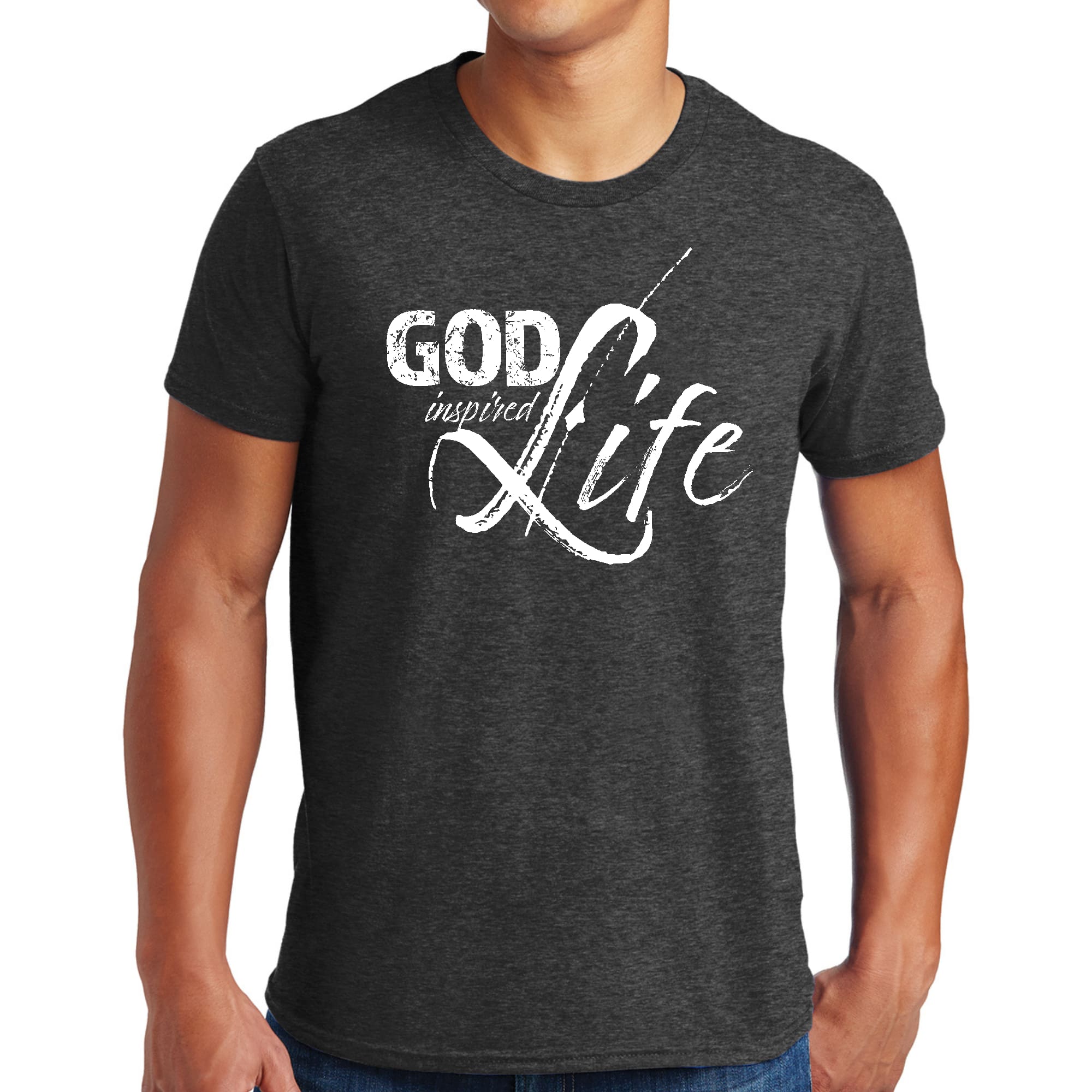 Men's Graphic T-shirt featuring God Inspired Life inspirational quote print, made from soft preshrunk cotton with a classic fit.