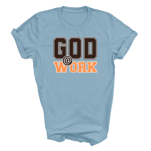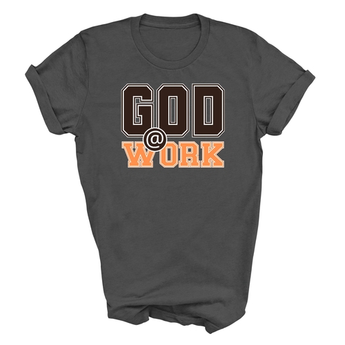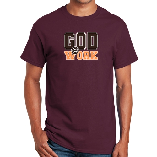 This 'God @ Work' graphic t-shirt is not just a piece of clothing; it's a statement. The unique brown and orange print adds a touch of personality to your wardrobe, making it easy to pair with jeans, shorts, or even joggers for a laid-back look. Whether you're heading to a casual meet-up with friends or enjoying a relaxed day at home, this t-shirt is a versatile addition to your collection.