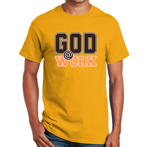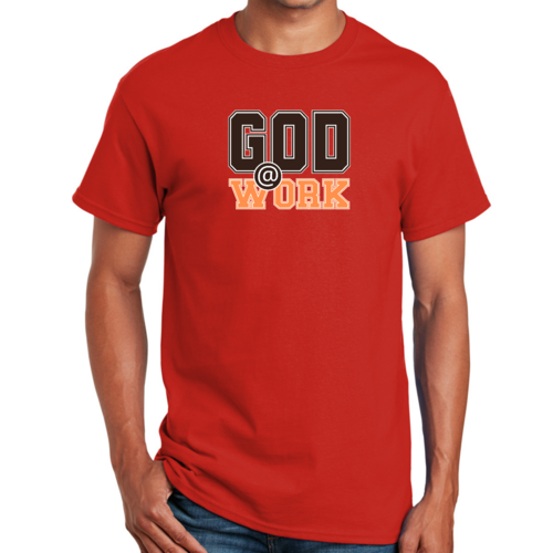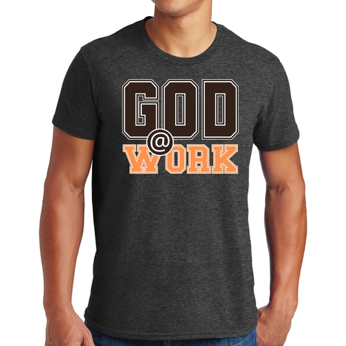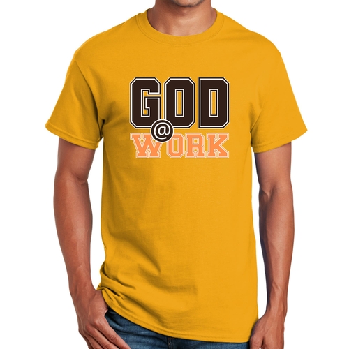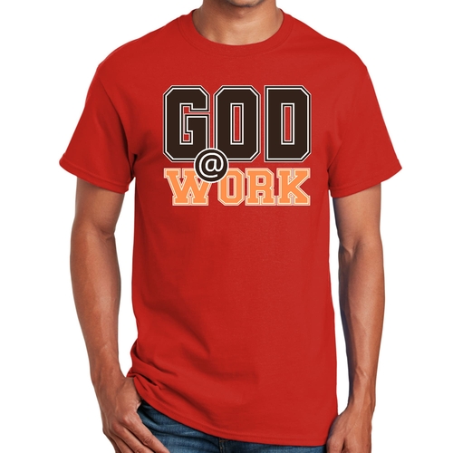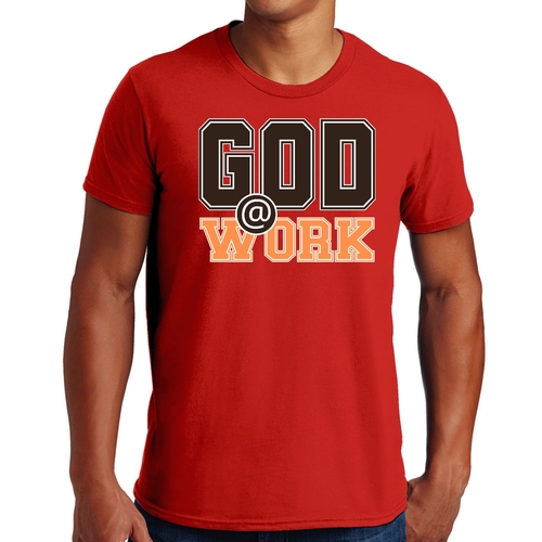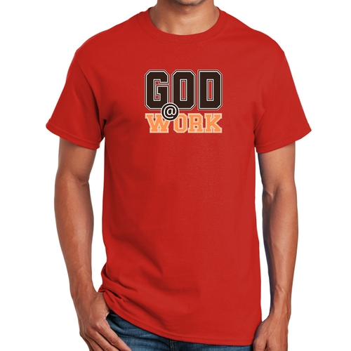 Introducing our Men's Graphic T-shirt featuring the inspiring 'God @ Work' print in a vibrant brown and orange color scheme. This stylish t-shirt is designed for both comfort and durability, making it an ideal choice for casual outings, gatherings, or simply lounging at home. Made from high-quality preshrunk cotton, this t-shirt ensures that you enjoy a soft feel against your skin while retaining its shape and size even after multiple washes.