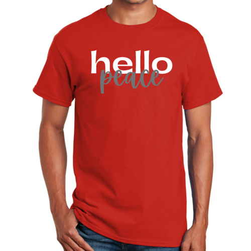 Caring for your Mens Graphic T-shirt Hello Peace is simple. It is recommended to wash it in cold water to preserve the colors and fabric quality. For drying, you can either hang it to dry or tumble dry on low heat. This easy maintenance makes it a practical choice for those with a busy lifestyle.
