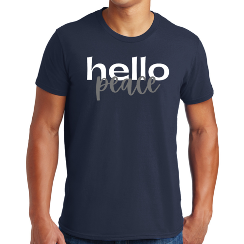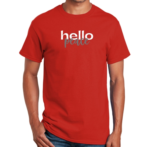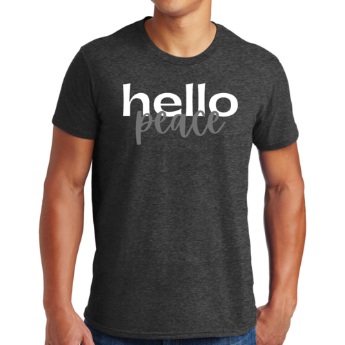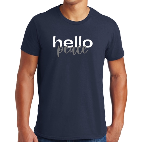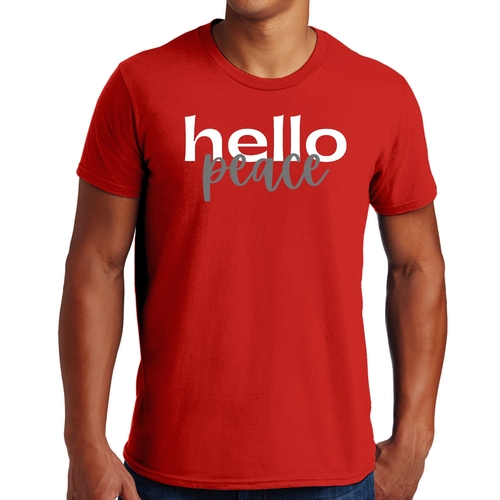 The Mens Graphic T-shirt Hello Peace in White and Gray is the perfect addition to any creative individual's wardrobe. This stylish tee is designed for those who appreciate unique designs and want to make a bold statement through their fashion choices. Crafted with high-quality cotton fabric, this t-shirt offers both comfort and durability, making it ideal for everyday wear.